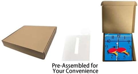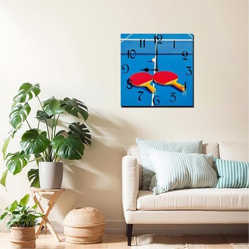 Ping Pong Square Clock Silent No Tick Battery Powered Home Decor 10inch Wooden Wall Clock for Living Room Kitchen Bathroom Farmhouse
