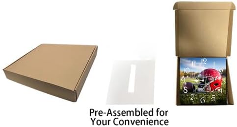 Football Square Clock Silent No Tick Battery Powered Home Decor 10inch Wooden Wall Clock for Living Room Kitchen Bathroom Farmhouse