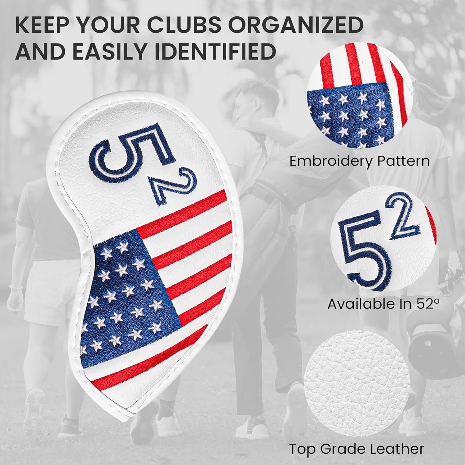 - Clear Identification: Featuring simple designs such as white&clover or USA flag, each cover includes clear number tags for quick club selection on the course. This makes it easy to grab the right wedge instantly, adding a subtle personal touch to your bag without flashiness.