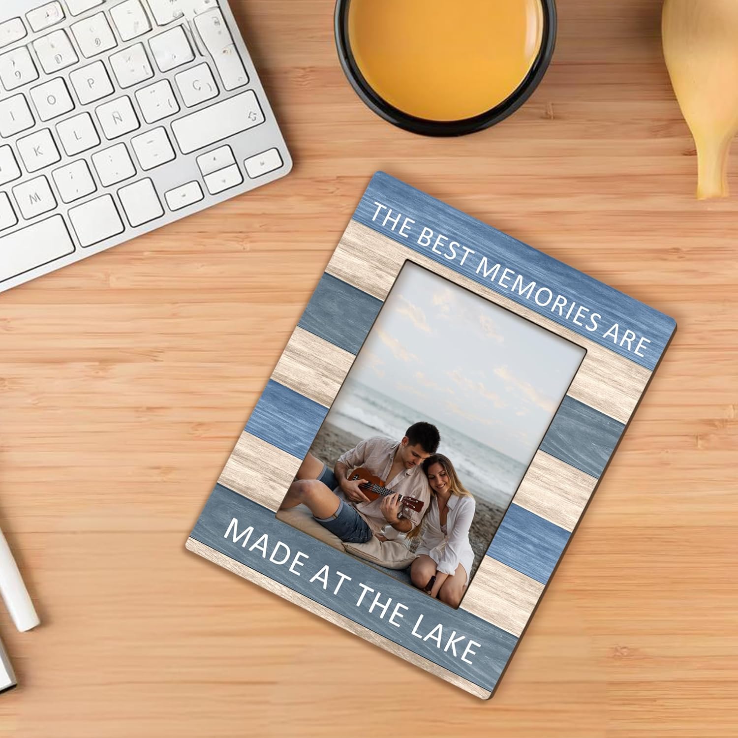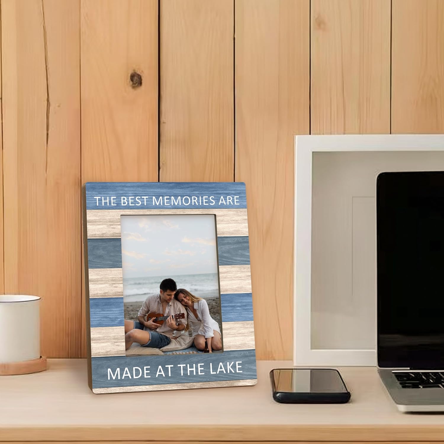 Lake House Gifts Picture Frame 5x7, LakeHouse Decor Photo Frame, Birthday Gifts for LakeLover Women Men, The Best Memories are Made at the Lake Wooden Picture Photo Frames for Desk Home Room Decor