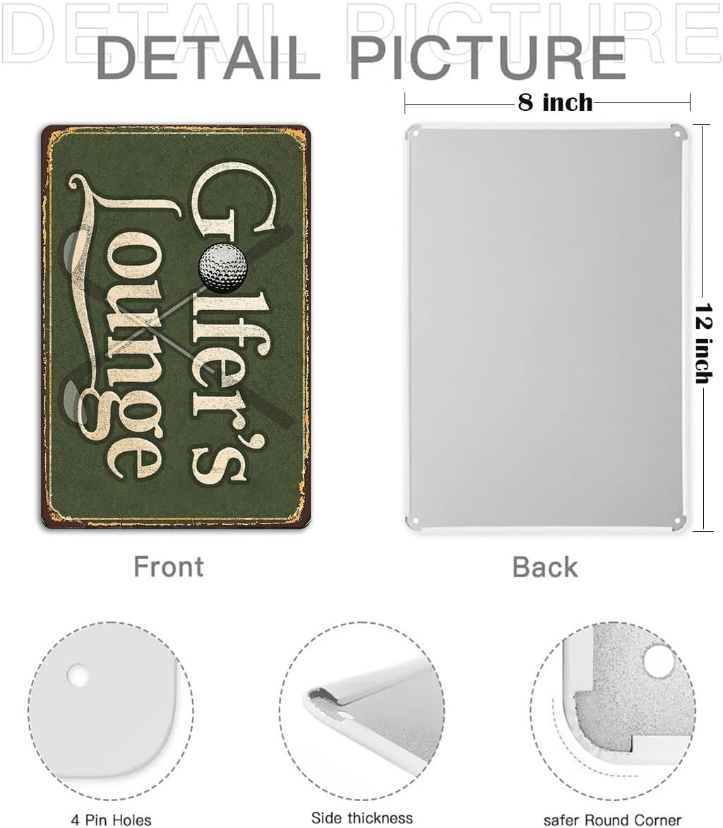 - Premium Material: Crafted from durable tin metal, this Golf Lounge sign features high-quality printing with vibrant colors and a weathered vintage finish, perfect for long-lasting golf room decor