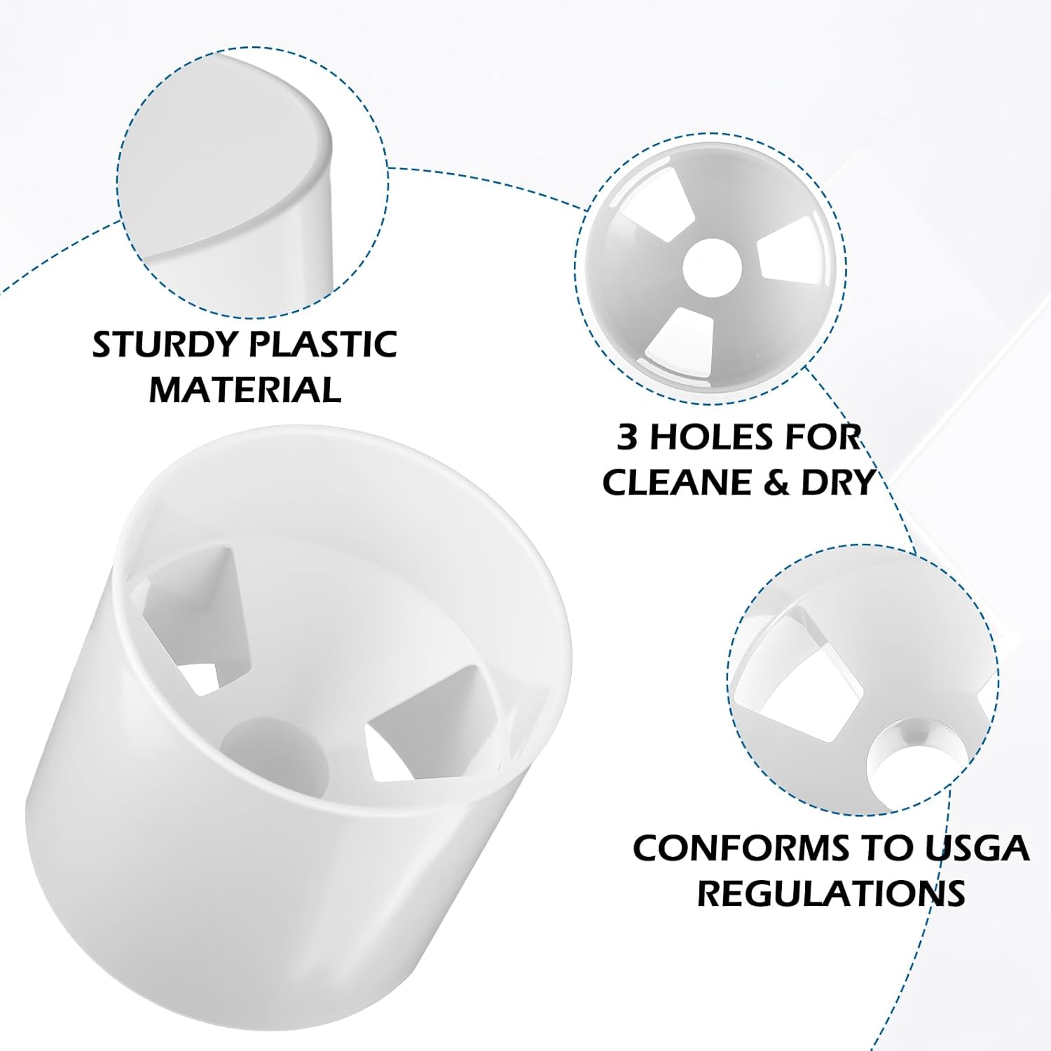 - 【Efficient Drainage Design】Each plastic putting green cup features 3 strategically placed drainage holes to keep the interior dry and clean. This thoughtful design prevents water accumulation, ensuring optimal performance in various weather conditions