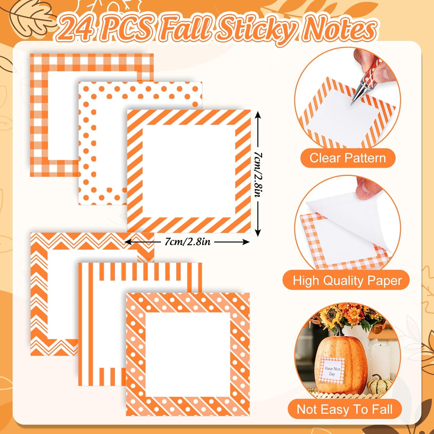 48 pcs Fall Stationery Set Orange-White Autumn Plaid Polka Dot Wave Line Sticky Note Pads with Ballpoint Writing Pens for Autumn Harvest Thanksgiving Party Favors Supplies