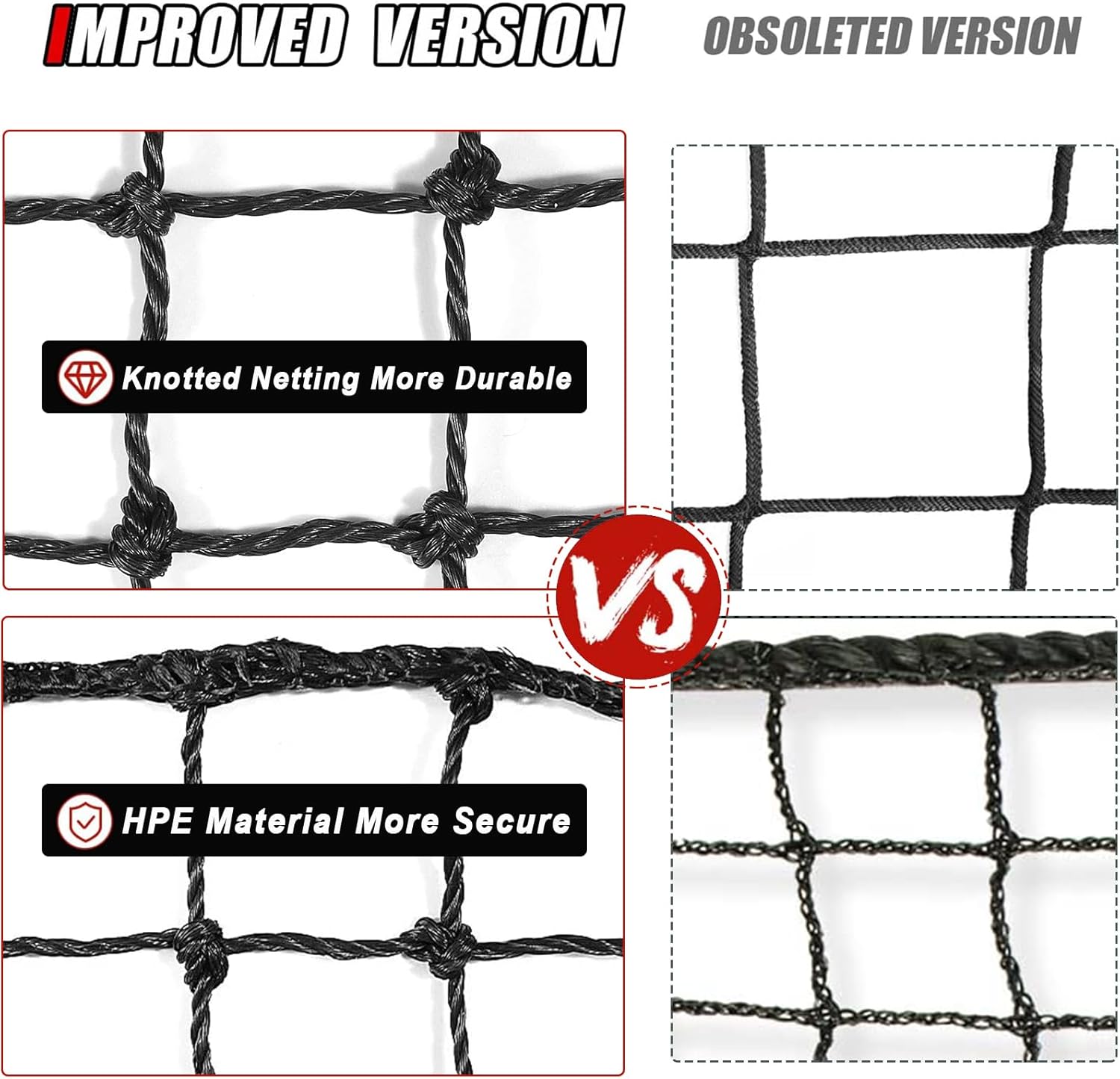 - 【Rope Border for Reinforcement】golf hitting net,The sports netting for hitting features overlocked rope edging to keep edges from splitting or fraying,which further increases the sturdiness of this baseball backstop netting material.