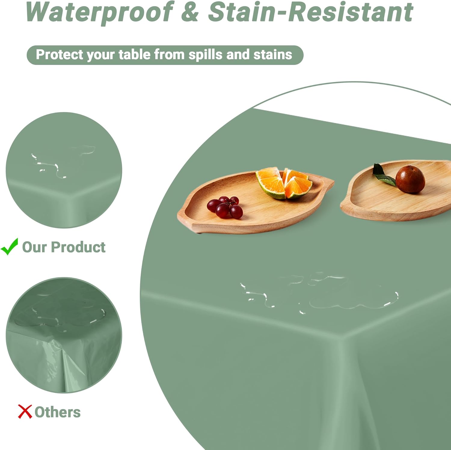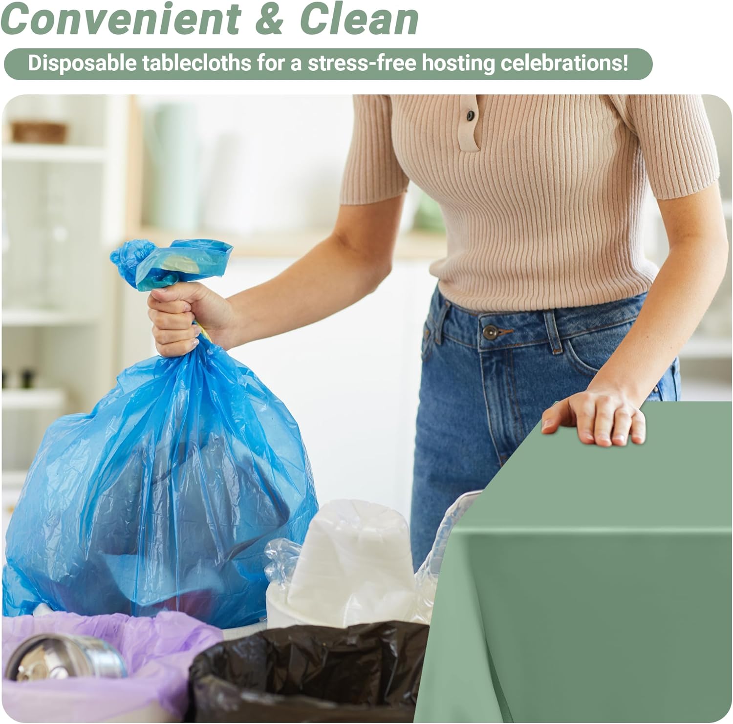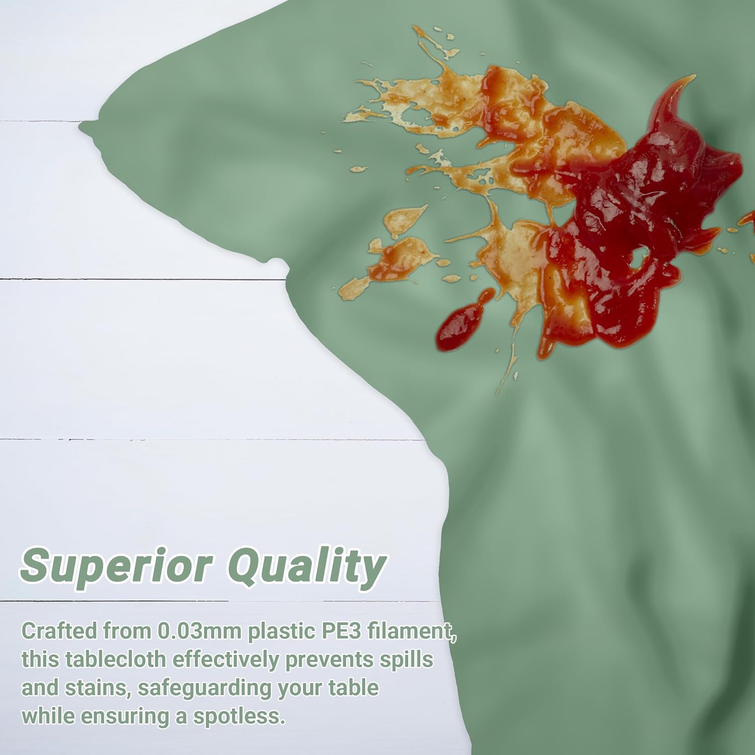- Fully covered size: Tailored to fit standard rectangle tables, our sage green plastic tablecloth measures 54 x 108 inches. As a table cloth rectangle table option, it provides complete coverage and boasts stain-resistant and waterproof properties.