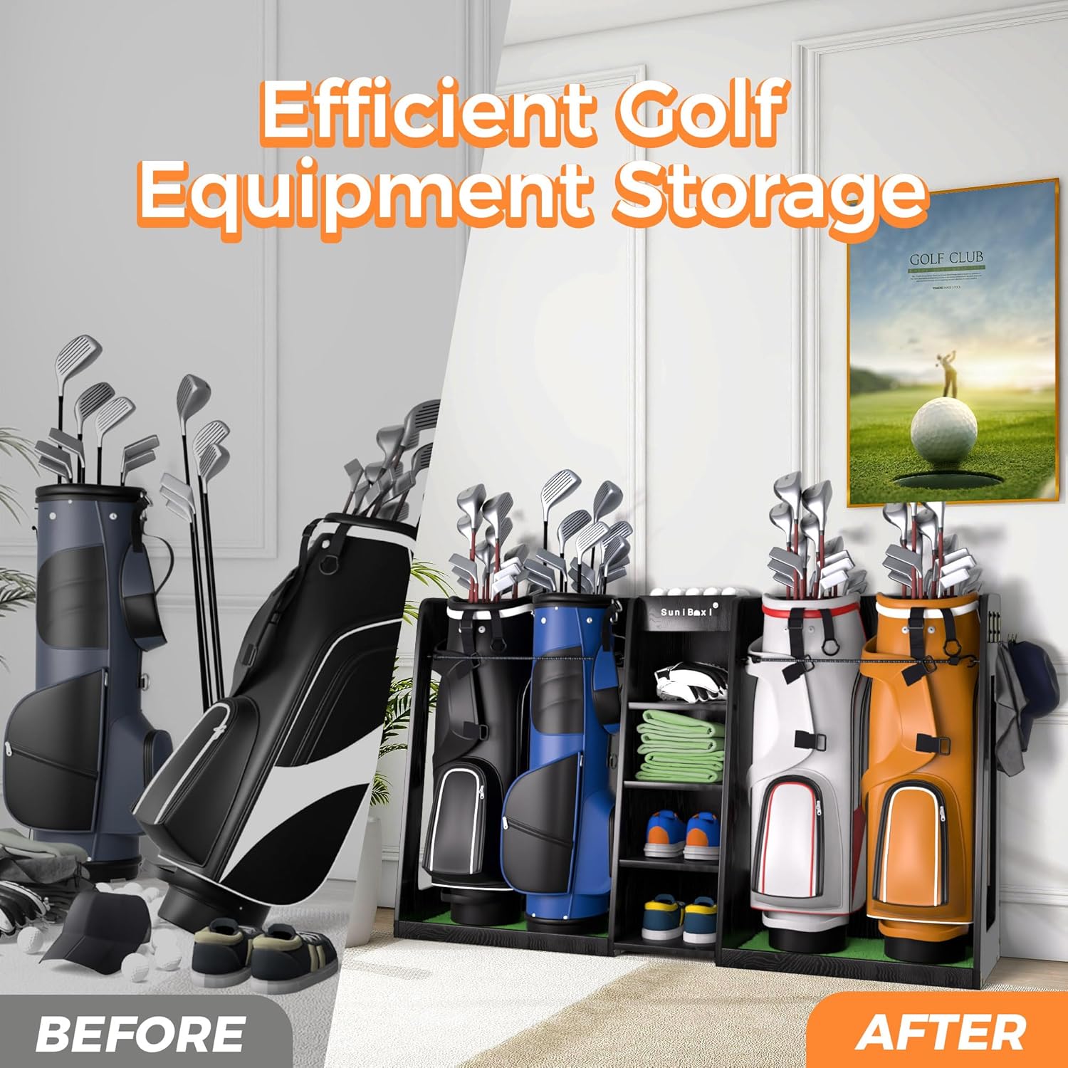 - Designed for Multi-Golfer Families: The golf bag organizer can store 4 full-size bags at once. Perfect for households with multiple players or golfers keeping both new and old sets