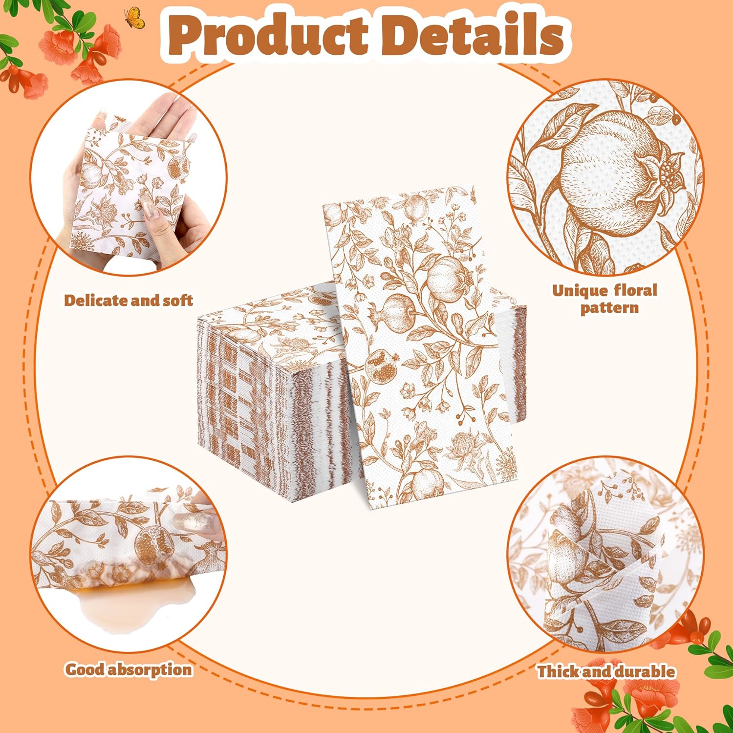100 Pieces Thanksgiving Fall Pomegranate Napkins Disposable Paper Decorative Guest Party Napkins 7.8 x 4.3 Inch Autumn Orange Floral Hand Towels for Fall Thanksgiving Wedding Birthday Party