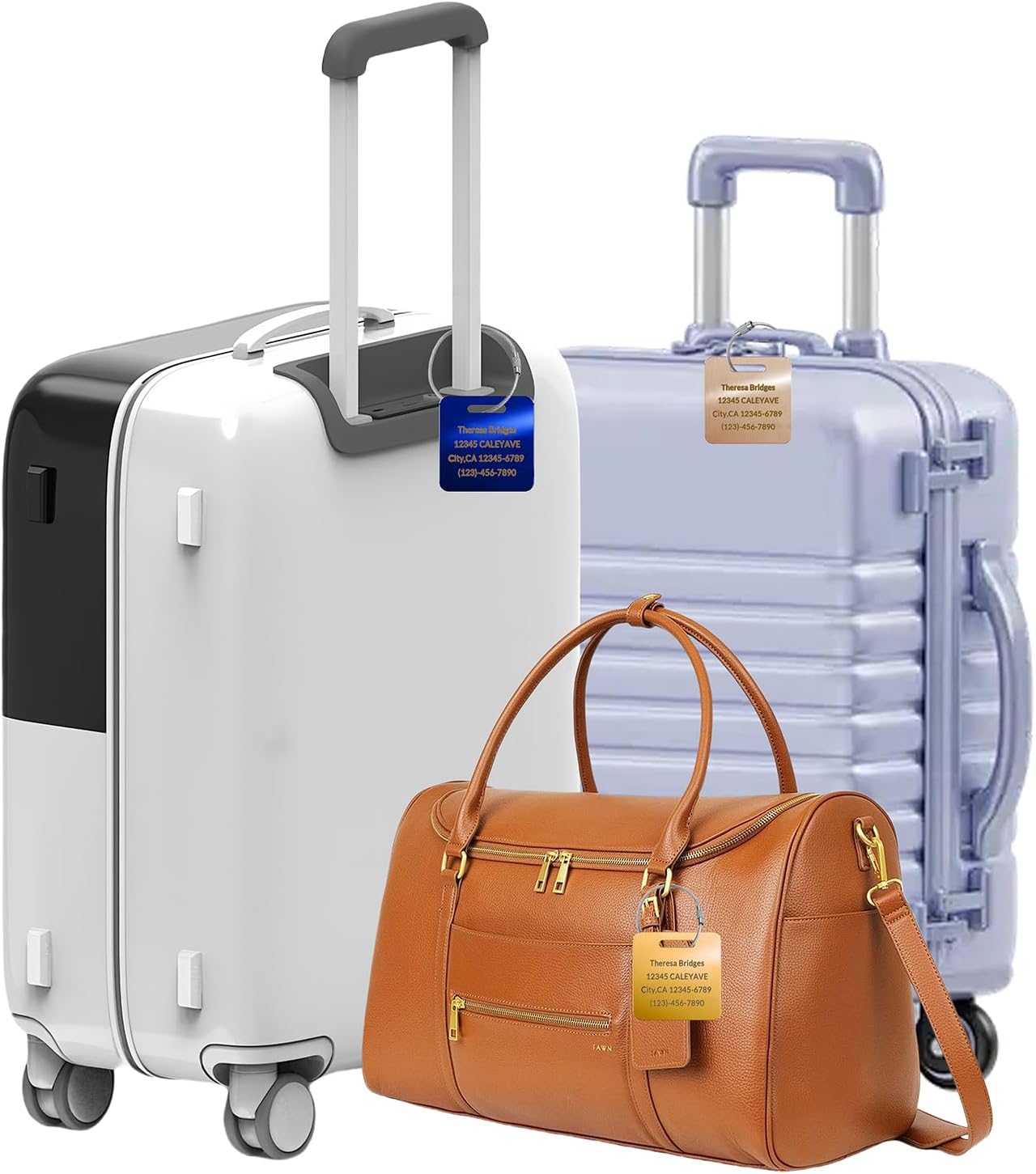 - [Durable Suitcase Tags] - Our name tags for luggage are made of aluminium, which is sturdy and durable, not prone to deformation or oxidation, waterproof and sun-proof. No matter what kind of bad weather it is, it will not affect its use. These tags are equipped with stainless steel rings that can be safely connected to your luggage and can be reused for a long time