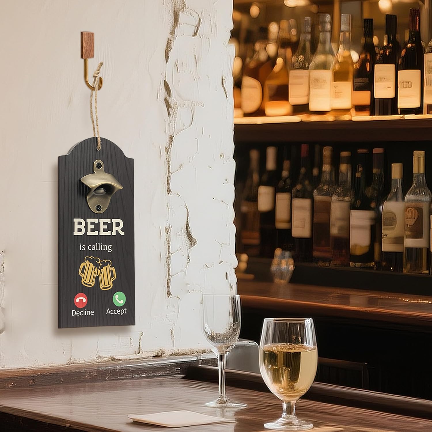 - ๐ Fun โBeer Is Callingโ Message โ Beer Bottle Opener Eye-catching design with beer mugs and Accept/Decline phone icons brings laughter to parties and gatherings.