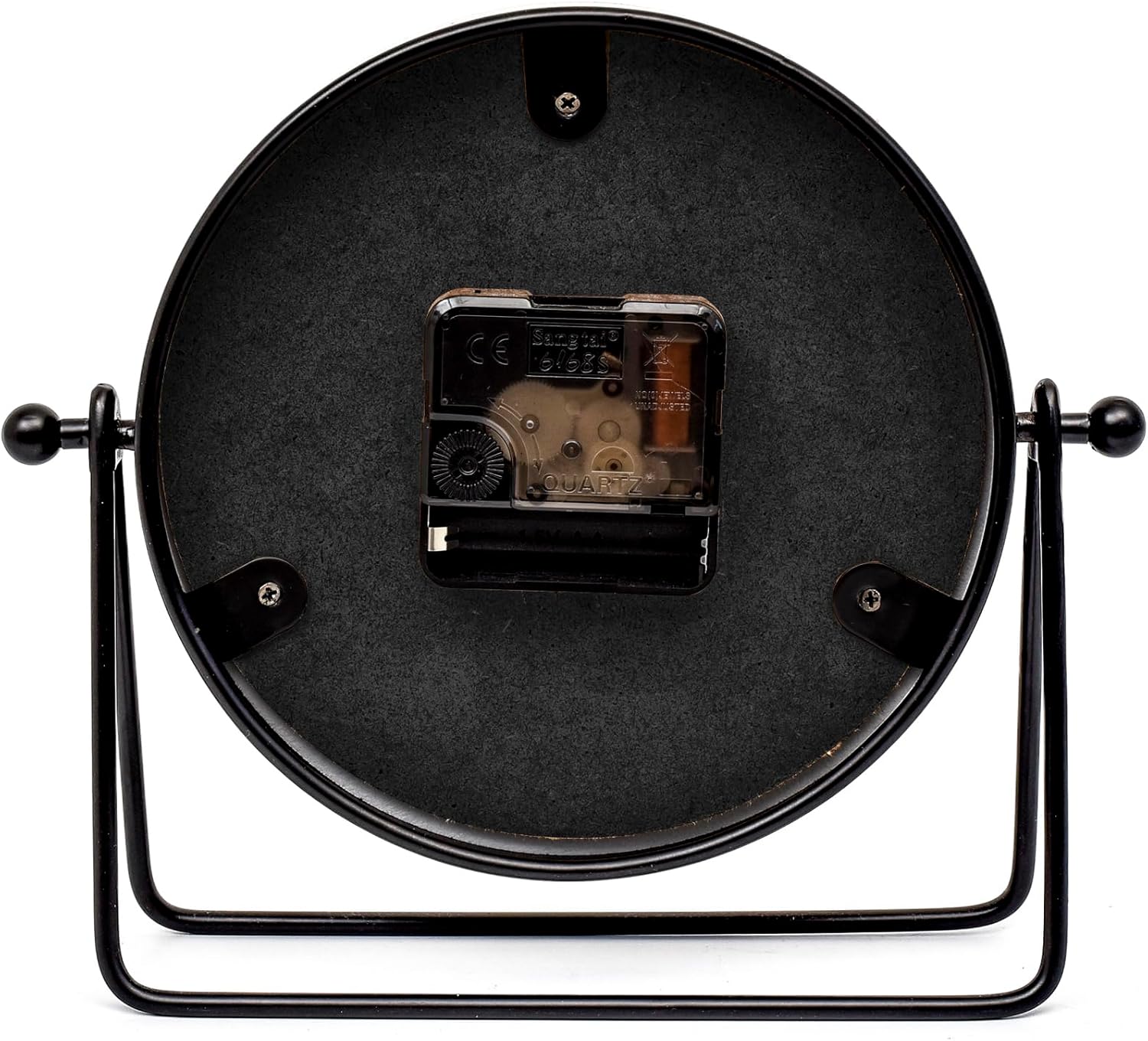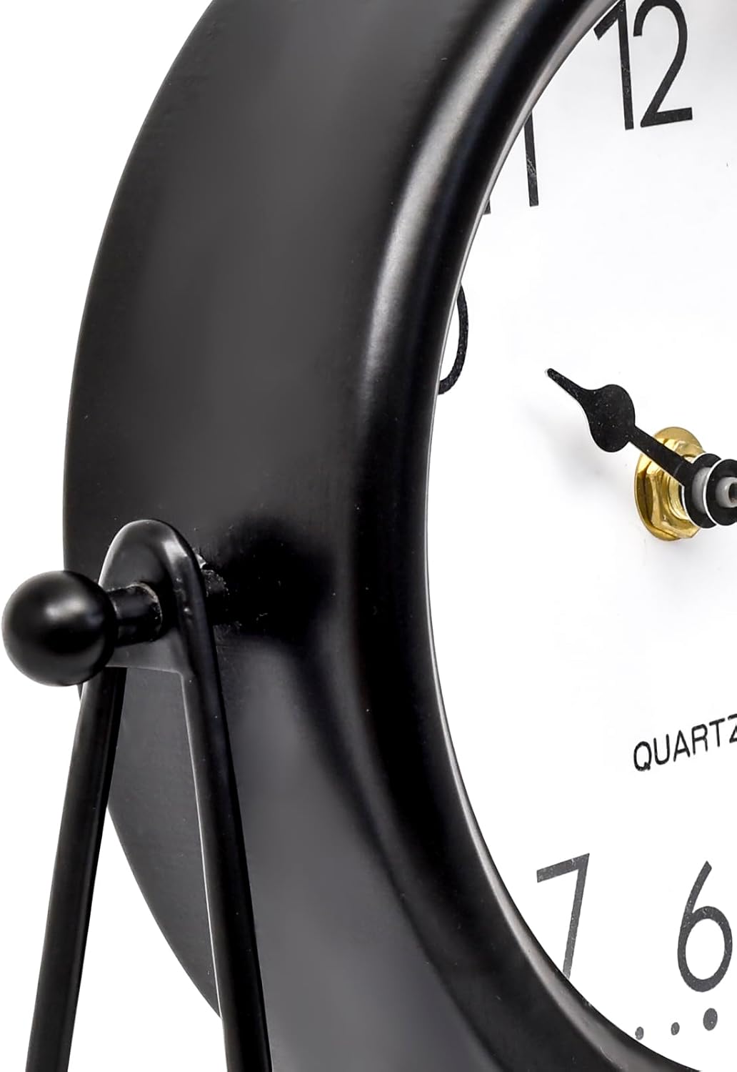 Vintage Black Table Clock - Decorative Battery Operated Desk Clock with Stand, Silent Non-Ticking for Living Room Shelf Decor, 8.6 x 7.8 Inches