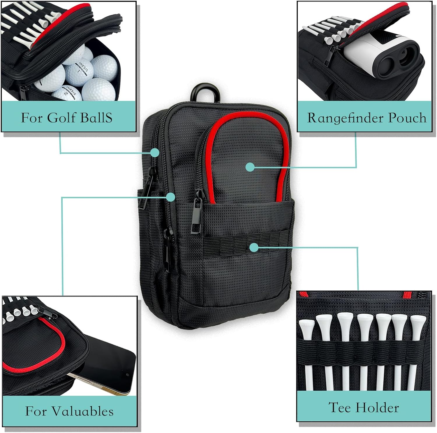 Tactical Golf Valuables Pouch with Clip-On Carabiner – Water-Resistant Golf Tee Bag Pouch for Belt, Cart or Backpack – Compact Golf Accessory Bag for Balls, Tees, Gloves & EDC Gear Black/Red