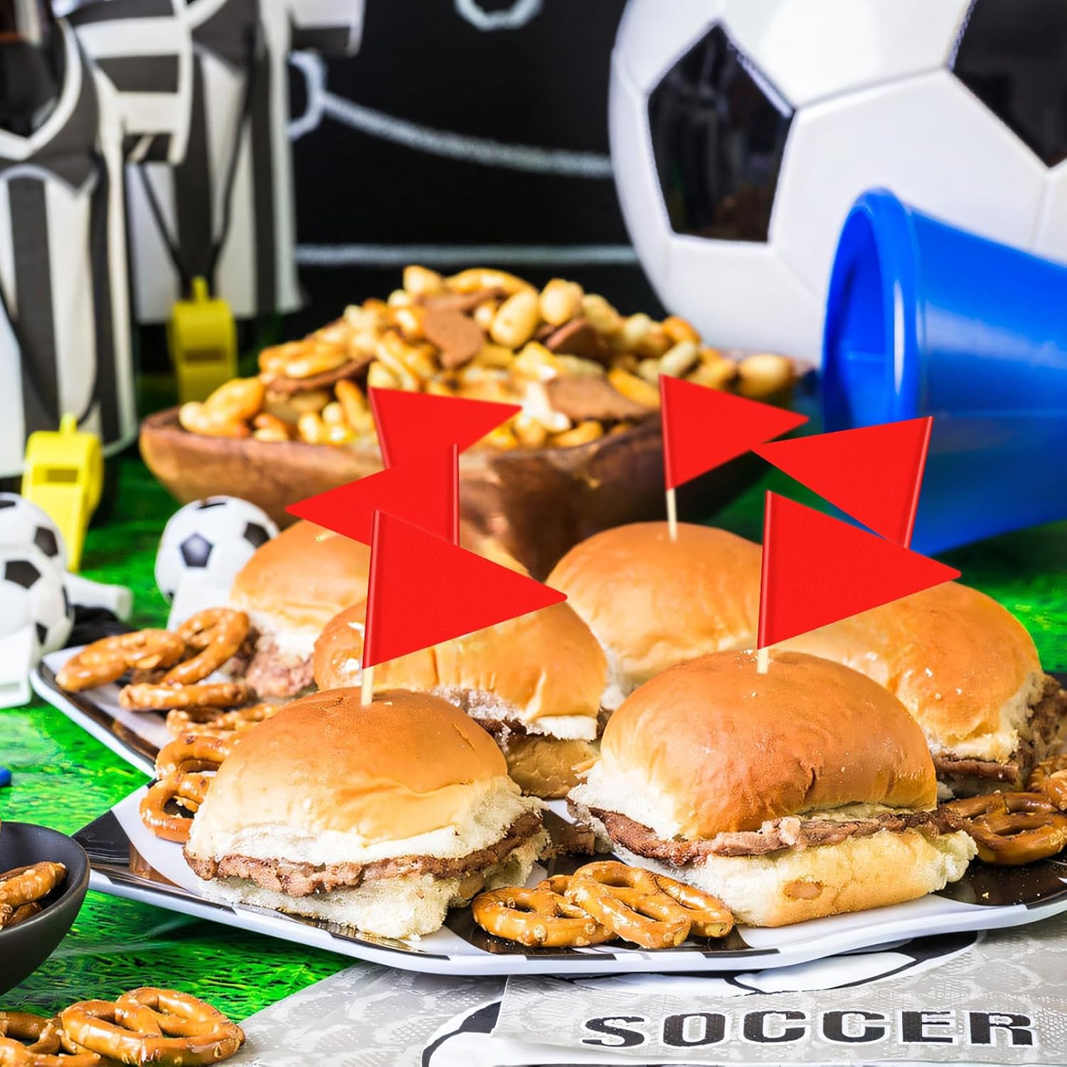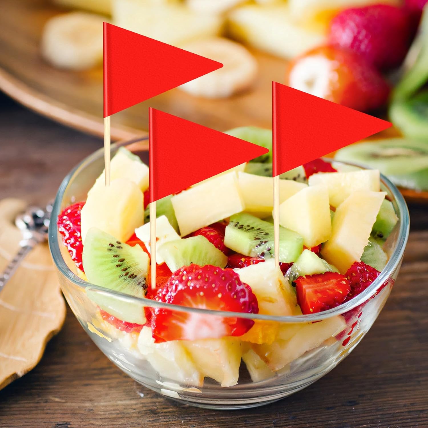 - 100PCS Red Solid Toothpick Flags Included : This package contains 100 red triangular toothpick flags, providing ample options for a variety of events. Each mini flag measures 1.45 x 2.59 inches, making them the perfect size for adding a touch of color and creativity to your decorations