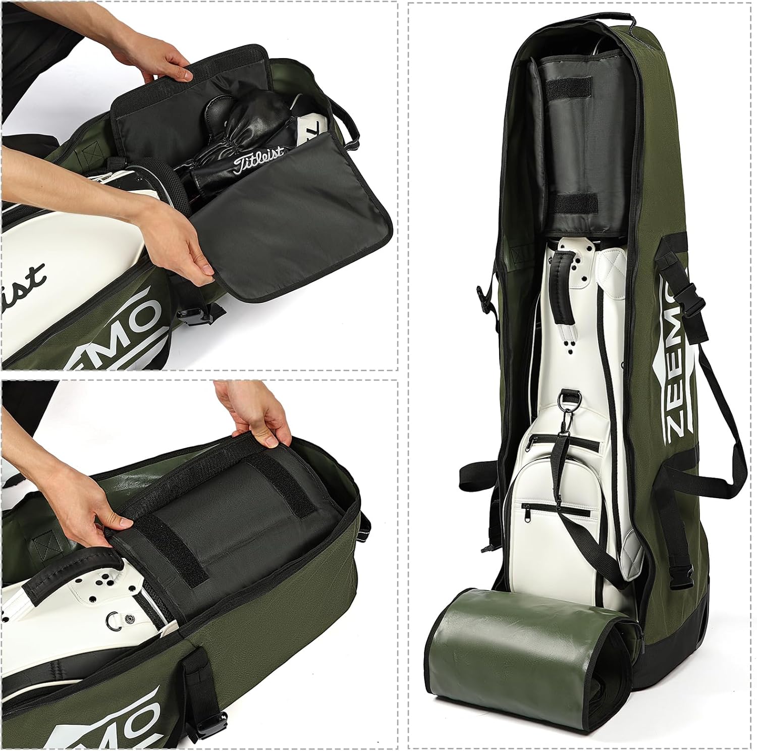 ZEEMO Golf Travel Bag, Full-Open Protective & Wheeled Airline-Approved Case for Clubs, Cart&StandBag, Soft-Sided Waterproof Cover Made of Heavy Duty Oxford