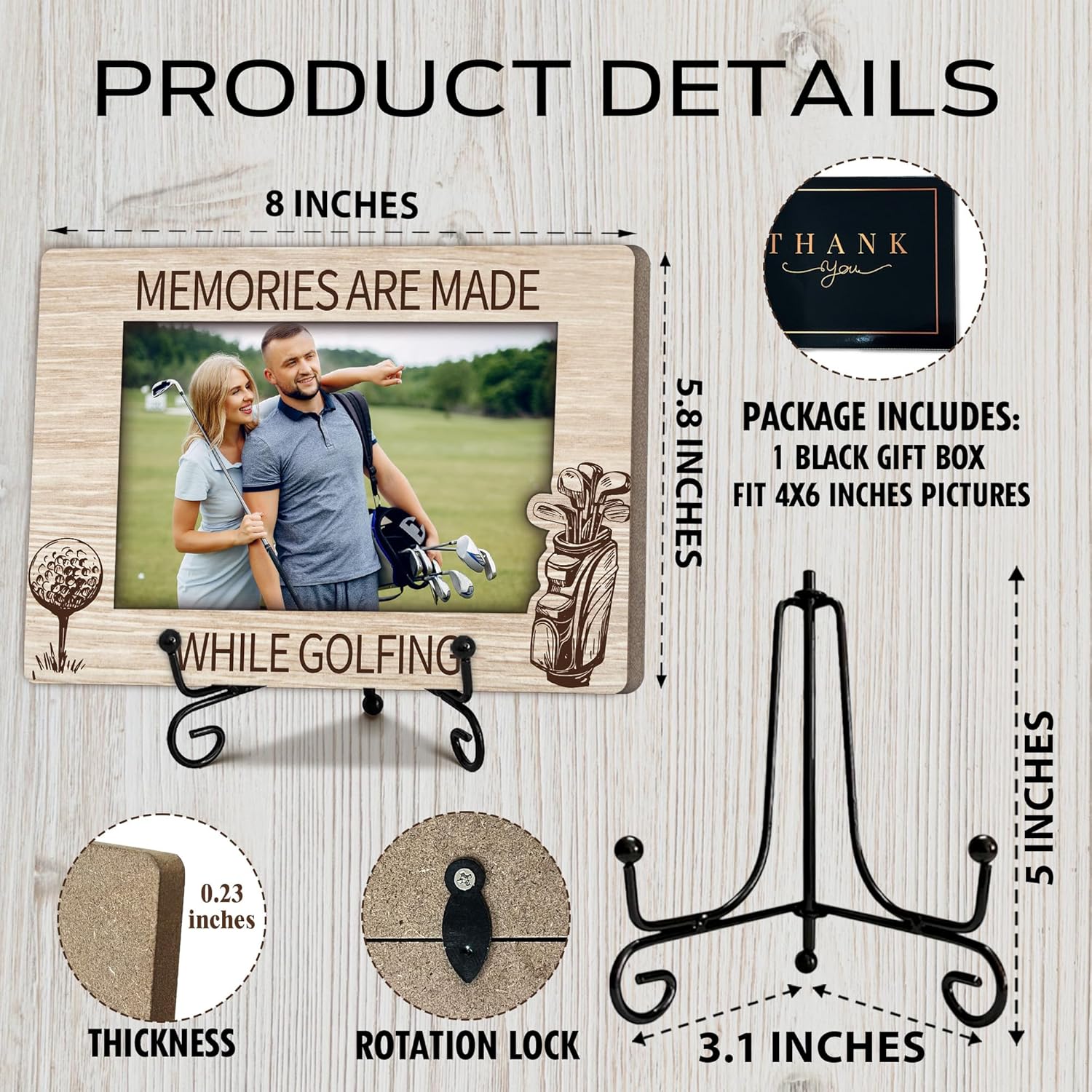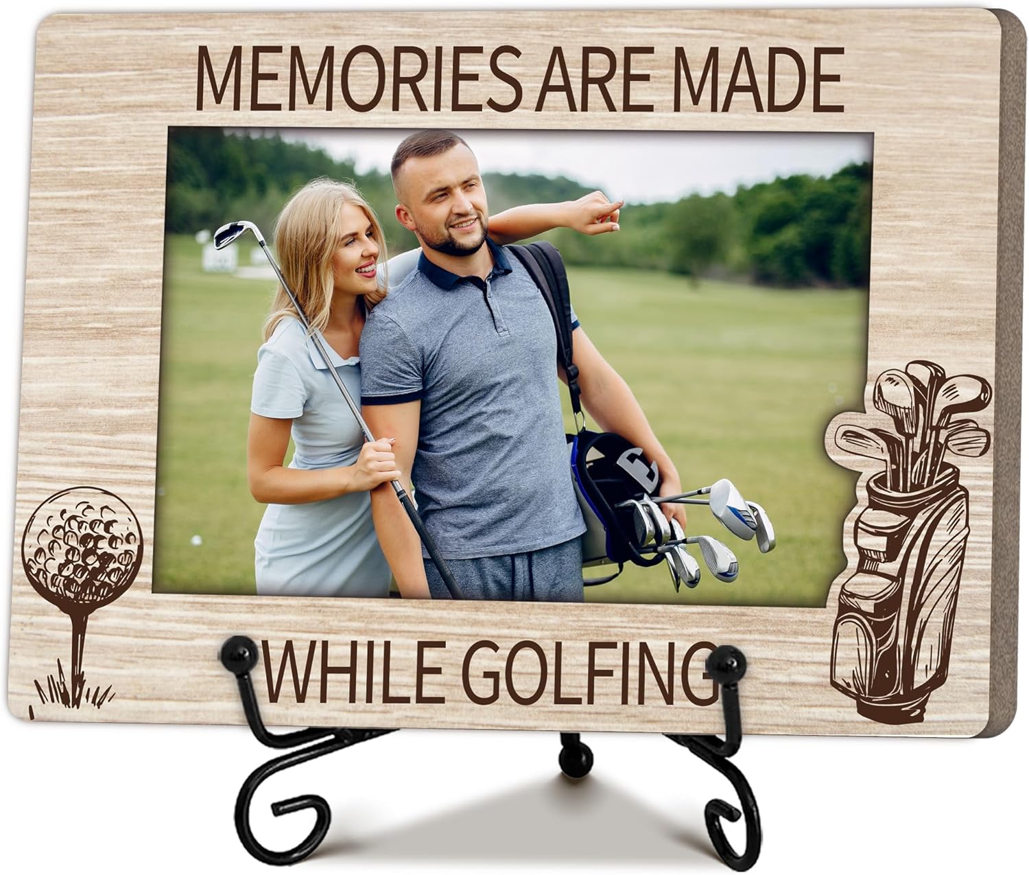 Special Golf Gifts for Women Men Friends, Warm Memory Gift for Family, Golf Decorative Photo Frame, Wooden Picture Frame with Stand, Golfer Present, Home Office Desk Decor-B25