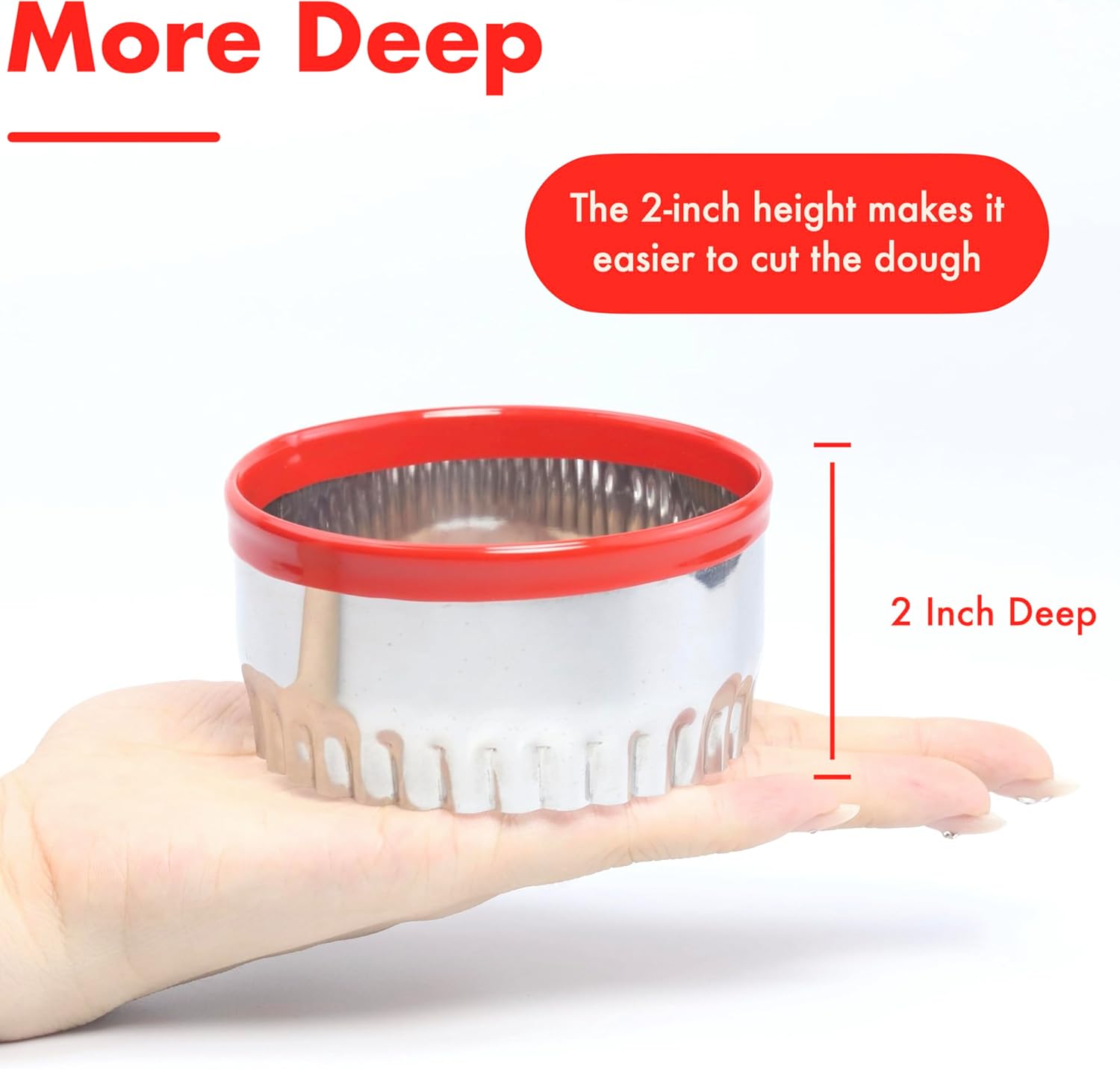 - Made from durable 0.4mm thick food-grade stainless steel, these scalloped biscuit cutters ensure clean, precise cuts every time. The rust-resistant material guarantees long-lasting performance.