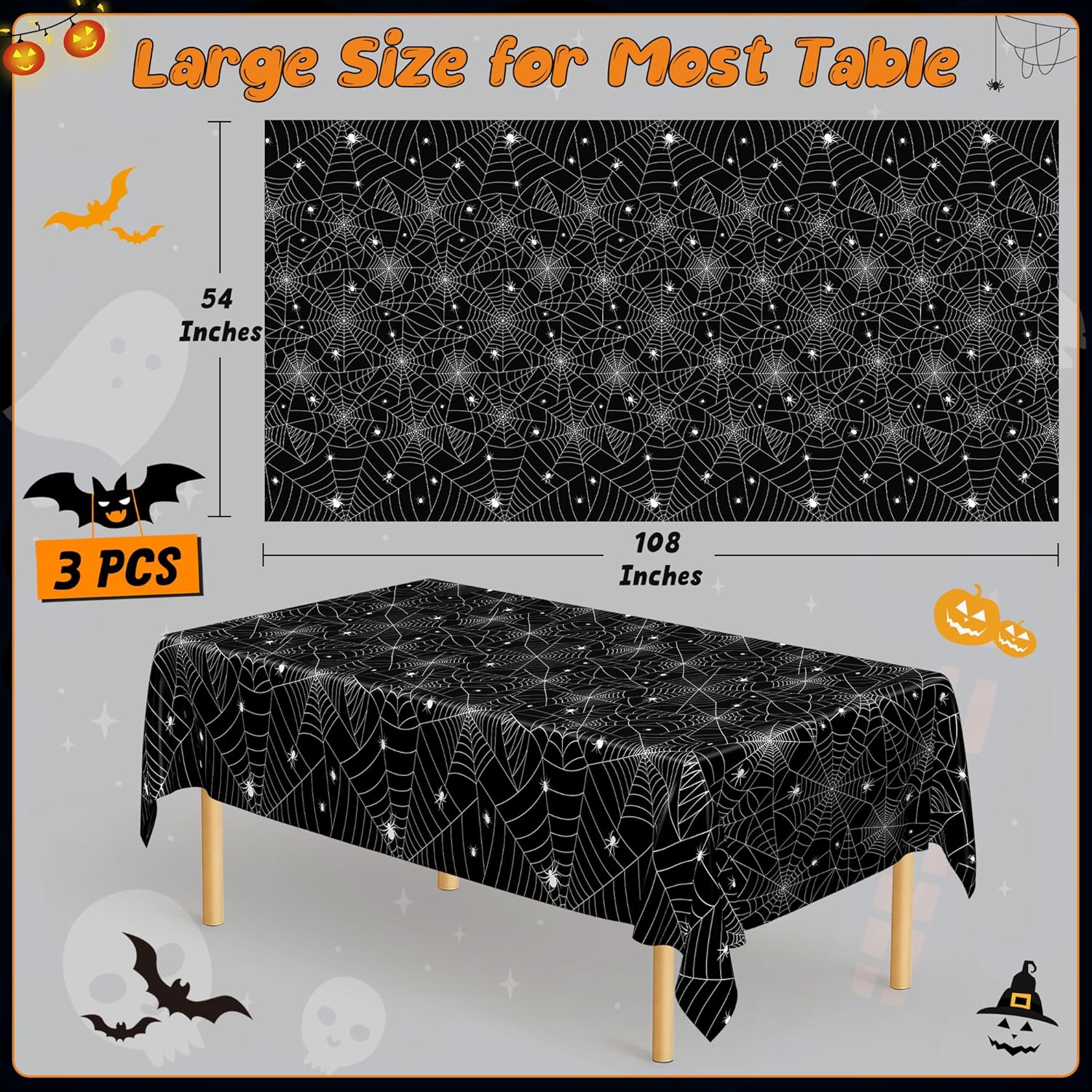 - Package Includes: You will receive 3 PCS Halloween plastic tablecloths, each tablecloth measures 54" x 108", extra large size and enough quantity for your spider webs Halloween decorations.