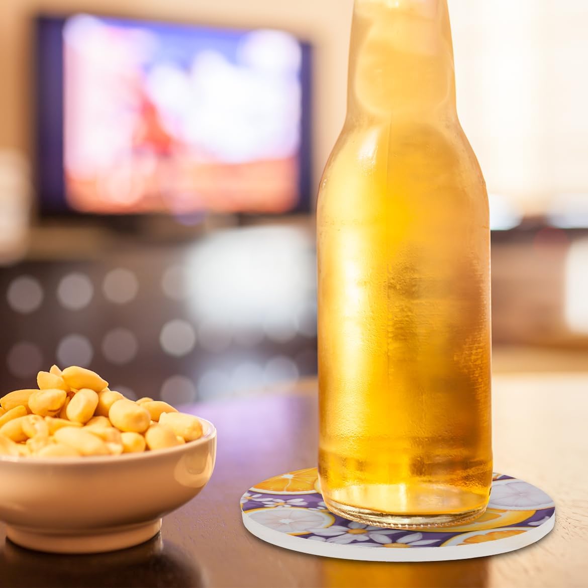 Ceramic Coasters for Drinks with Cork Back, Citrus Slice Daisy 4 Inch Absorbent Coaster Set 1 Pack, Quick Dry Non-Slip Coaster Mats for Home, Office, Bar