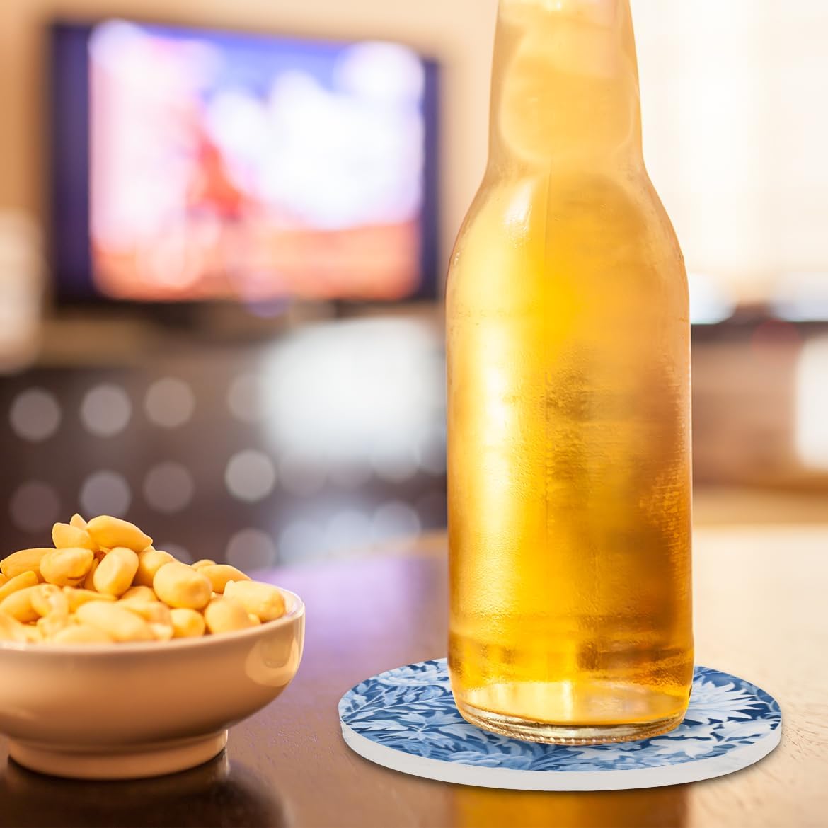 Ceramic Coasters for Drinks with Cork Back, Cyan White Floral 4 Inch Absorbent Coaster Set 1 Pack, Quick Dry Non-Slip Coaster Mats for Home, Office, Bar