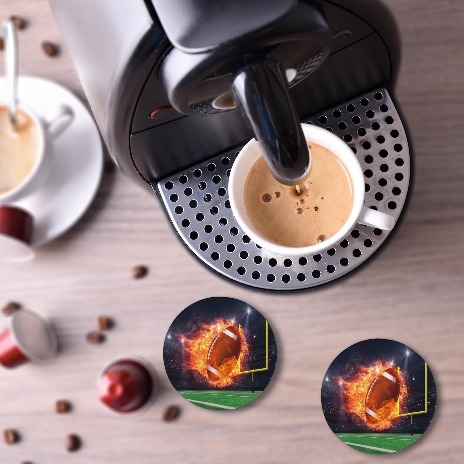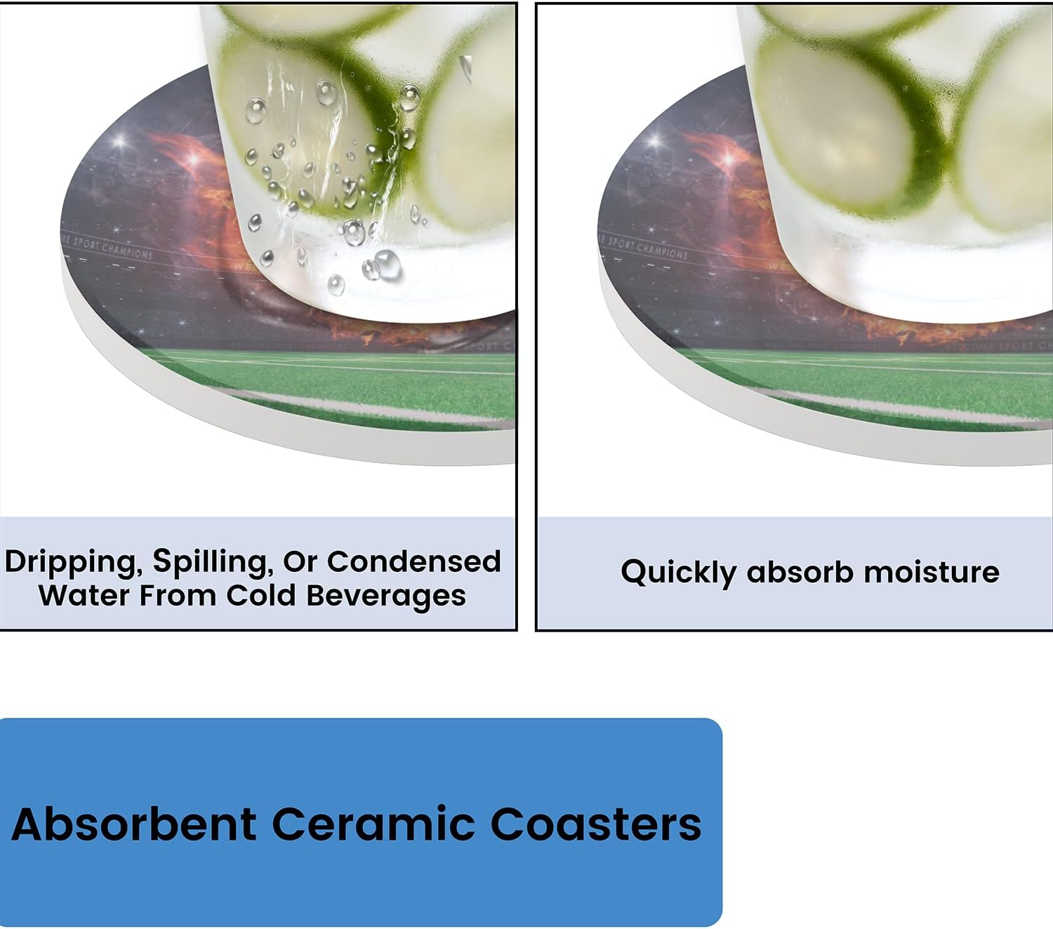 Ceramic Coasters for Drinks with Cork Back, Clean Soccer Display (2) 4 Inch Absorbent Coaster Set 2 Pack, Quick Dry Non-Slip Coaster Mats for Home, Office, Bar