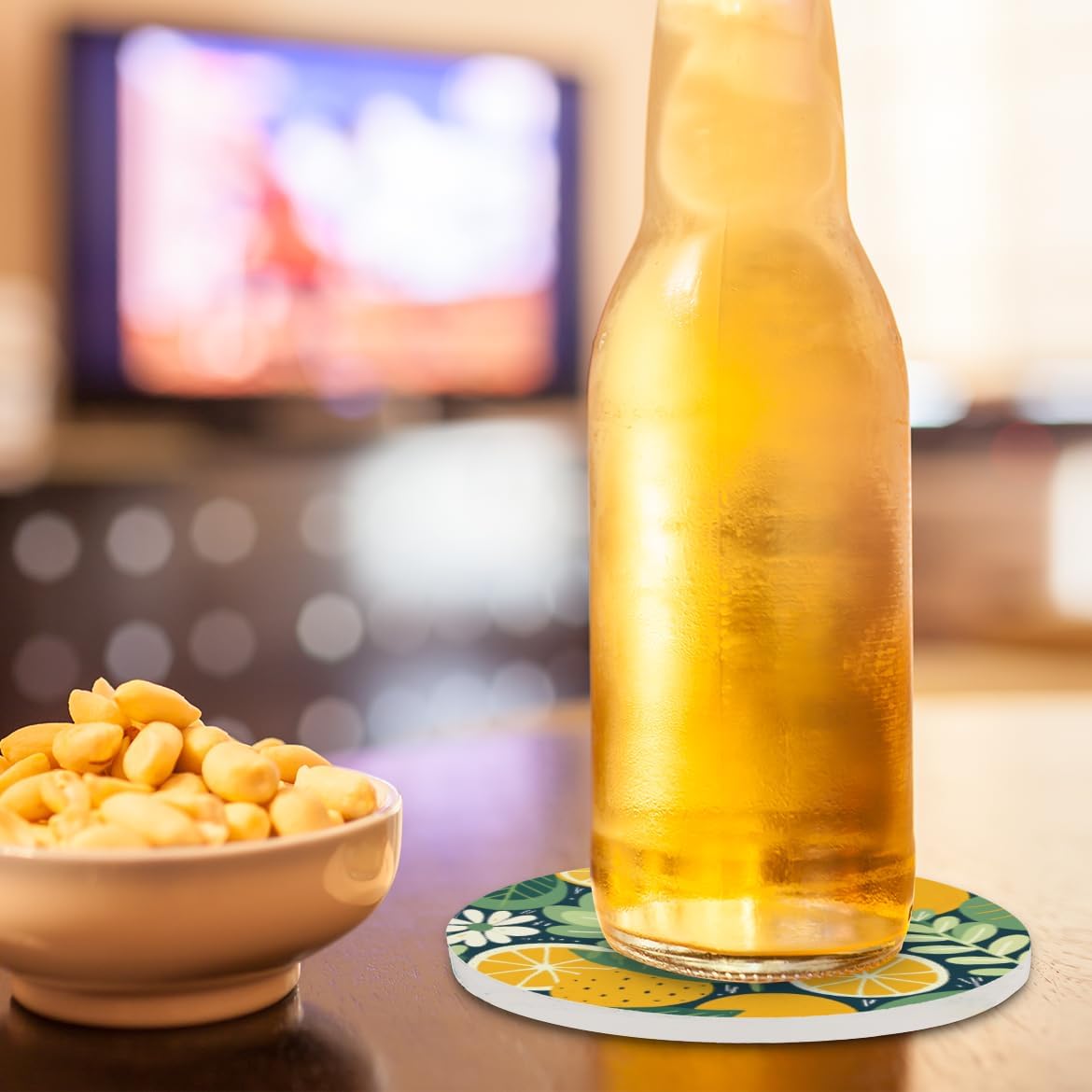 Ceramic Coasters for Drinks with Cork Back, Citrus Greenery 4 Inch Absorbent Coaster Set 2 Pack, Quick Dry Non-Slip Coaster Mats for Home, Office, Bar