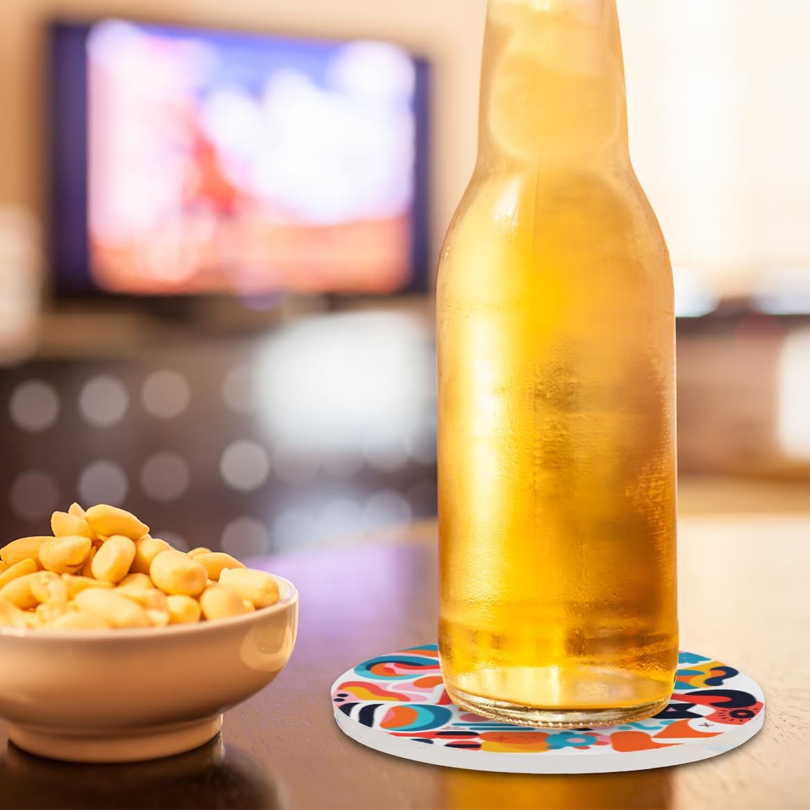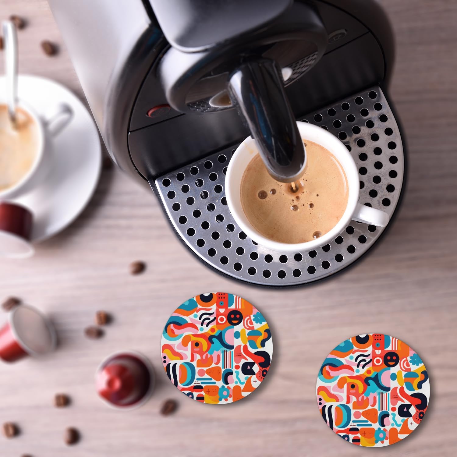 Ceramic Coasters for Drinks with Cork Back,Colorful Abstract Shapes 4 Inch Absorbent Coaster Set 4 Pack, Quick Dry Non-Slip Coaster Mats for Home, Office, Bar