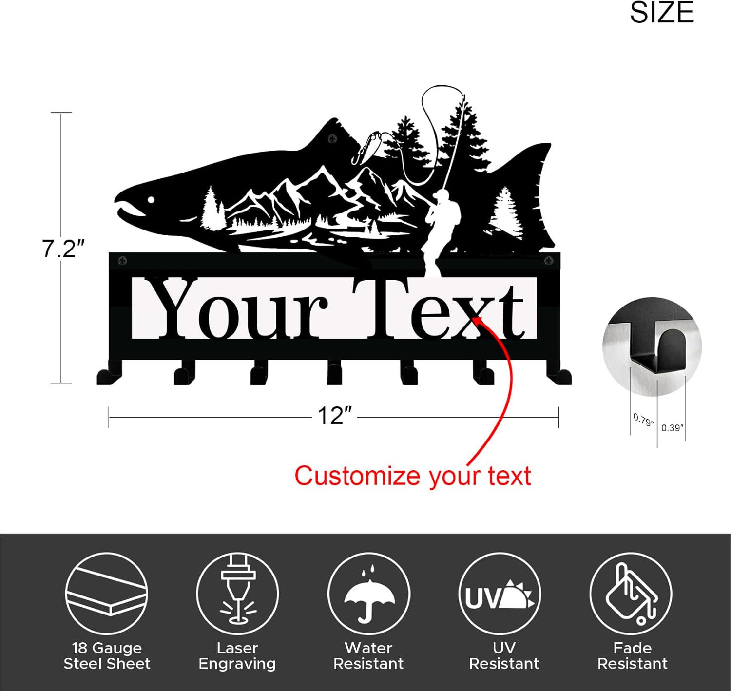 - Personalized Family Key Holder: Customize this wall-mounted key holder with your family name, couple’s initials, or a short message. Featuring a graceful salmon fish silhouette, this fishing-themed key hanger is perfect for anglers and nature lovers. It makes an ideal gift for fishermen, dads, husbands, or anyone who loves life by the river or sea