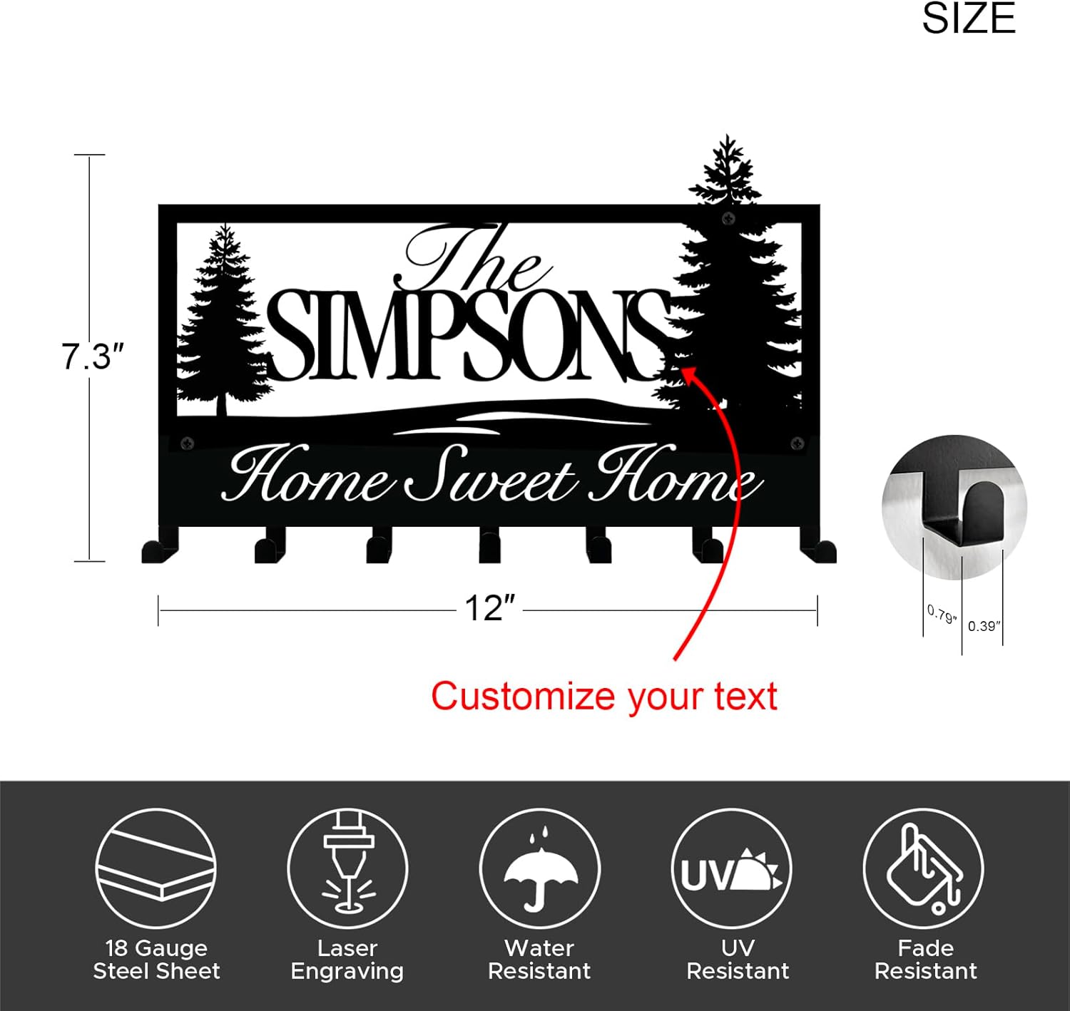 - Personalized Family Key Holder: Customize this wall-mounted key holder with your family name, initials, or a short message. Featuring a beautiful forest silhouette with trees and the phrase “Home Sweet Home”, this nature-inspired key hanger adds warmth and charm to any entryway. Perfect for families who love the outdoors and makes a thoughtful gift for new homeowners, dads, or moms