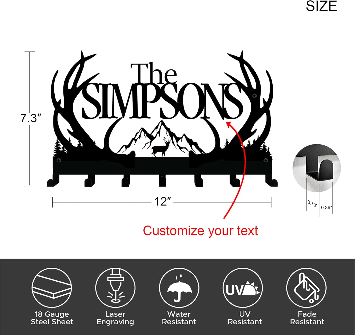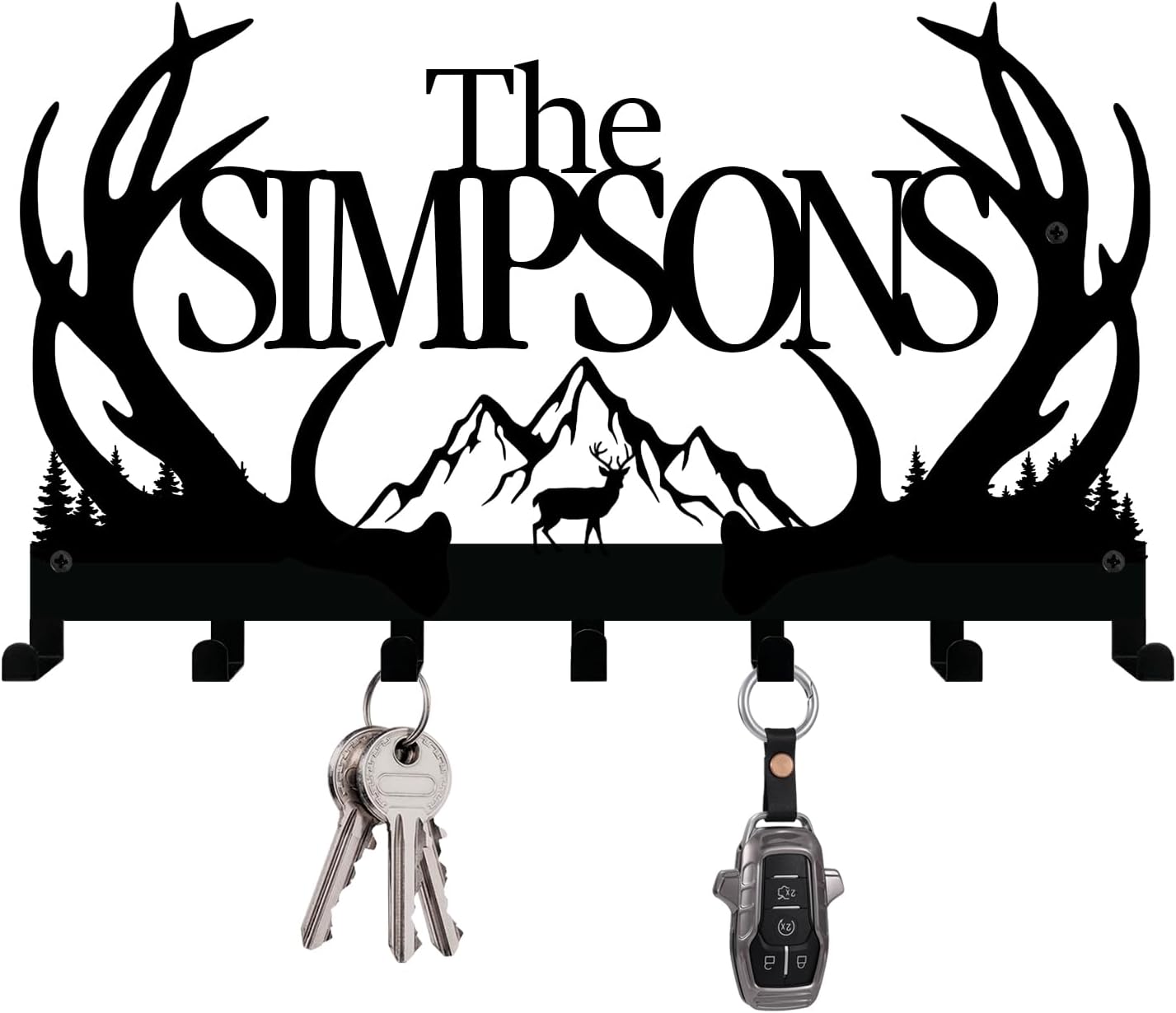 - Personalized Family Key Holder: Customize this wall-mounted key holder with your family name, couple's initials, or a short message. Featuring an elegant antler silhouette design, this unique woodland-themed key hanger is perfect for hunting enthusiast families and makes an ideal gift for hunters, husbands, or dads