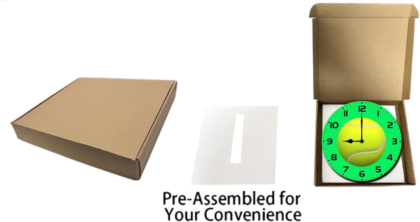 Soliyoahee Tennis Clock Round Wooden Wall Clock Home Decor Silent No Tick Battery Powered for Living Room Bedroom Kitchen Bathroom 10inch