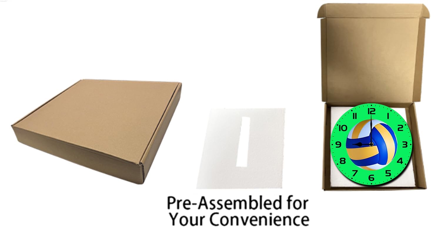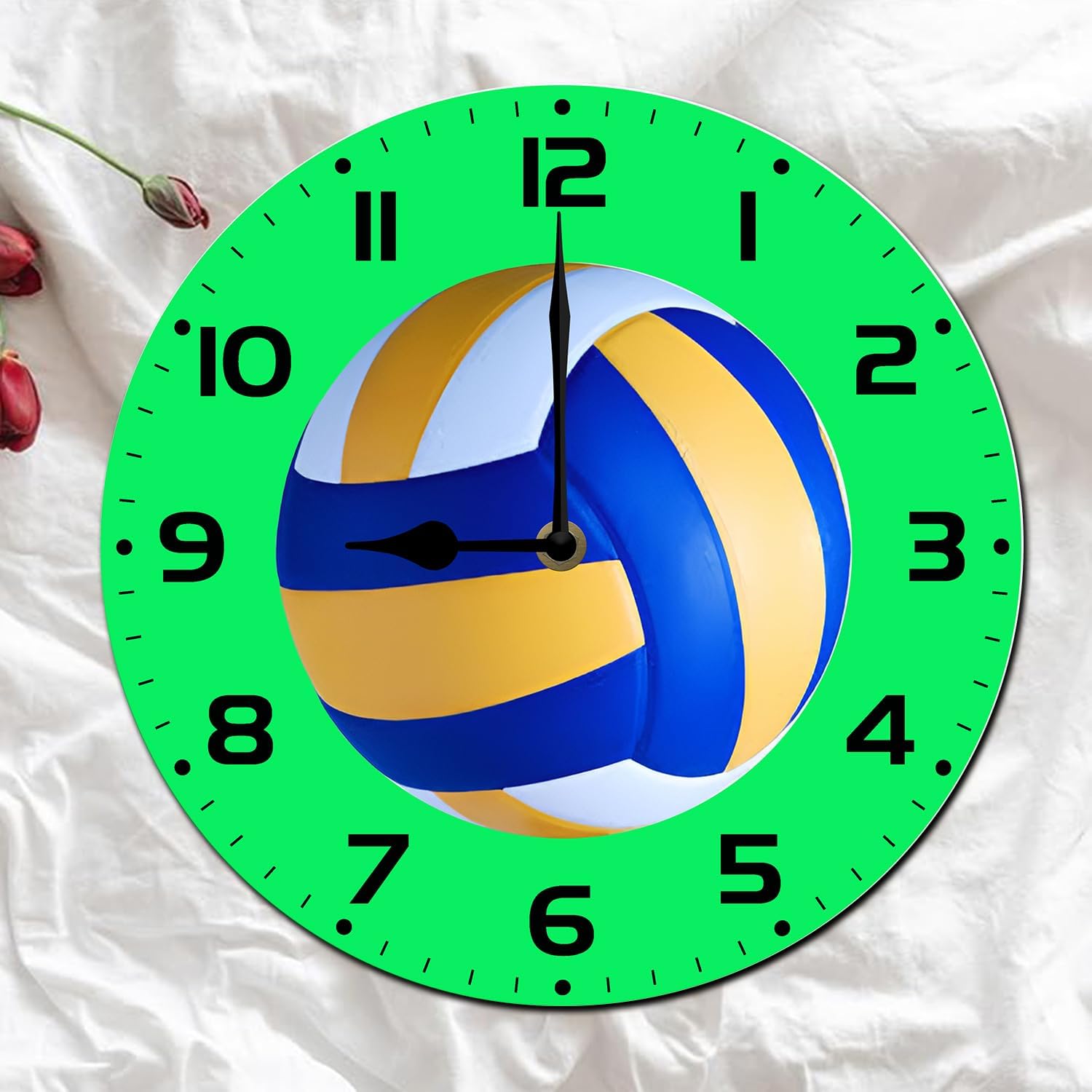 Soliyoahee Volleyball Clock Round Wooden Wall Clock Home Decor Silent No Tick Battery Powered for Living Room Bedroom Kitchen Bathroom 10inch
