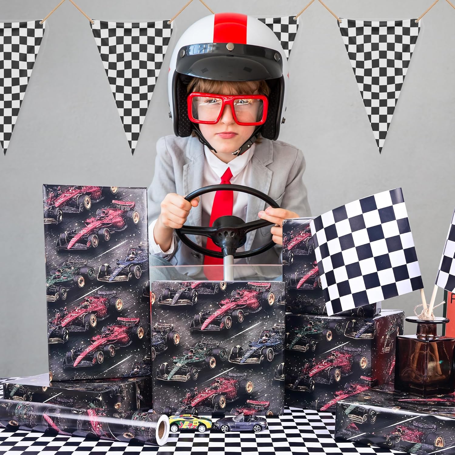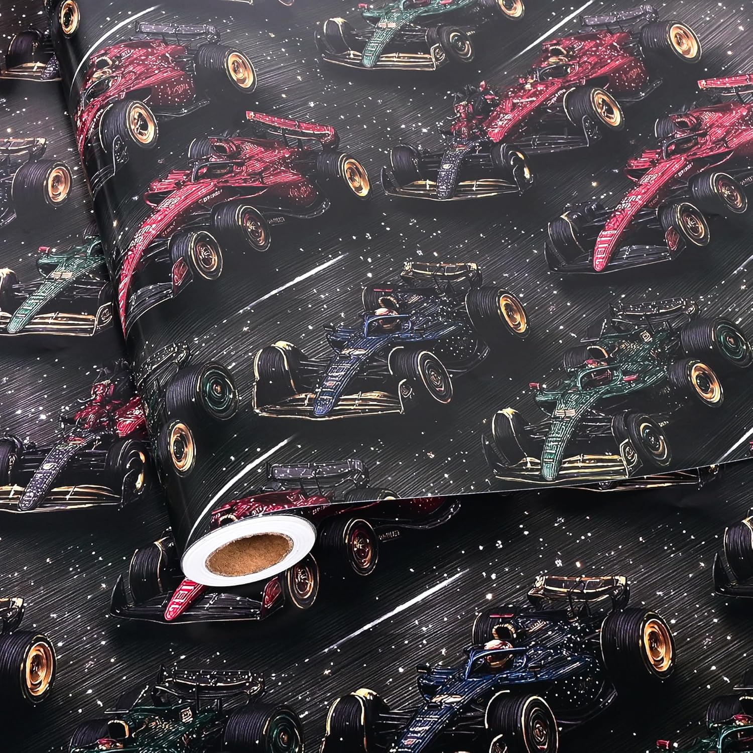 - Unique Race Car Designs: Our wrapping paper features black and red racing car patterns.These gift wrap are limited edition and unique to make it easy to add a personal touch to your present.