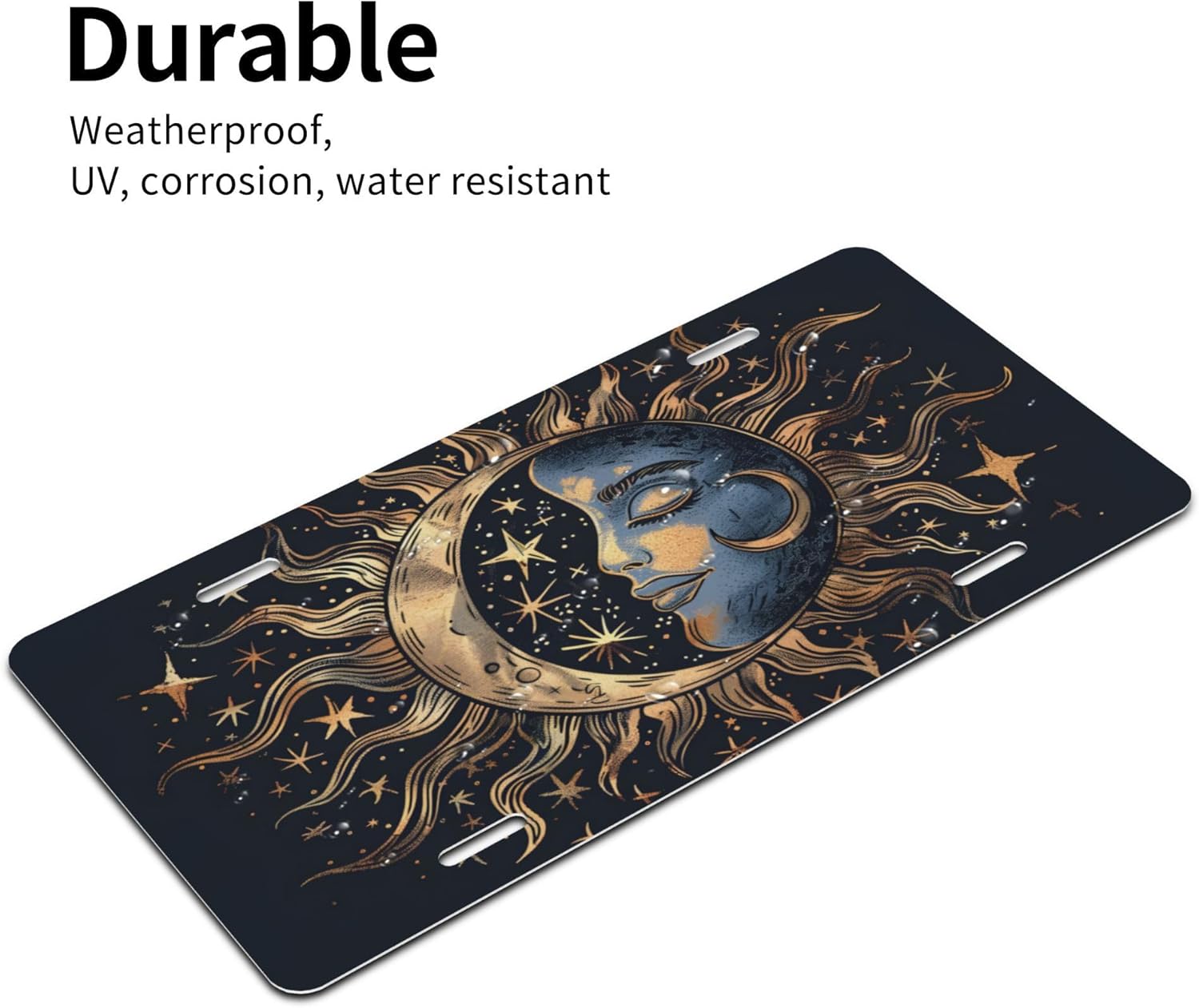 Sun Moon Face License Plate Funny Aluminum Front License Plates Decorative Waterproof Rust-Free Metal Car Plate Covers for Women Men Car Tag Accessories fit Truck SUV Rv 12 X 6 Inch