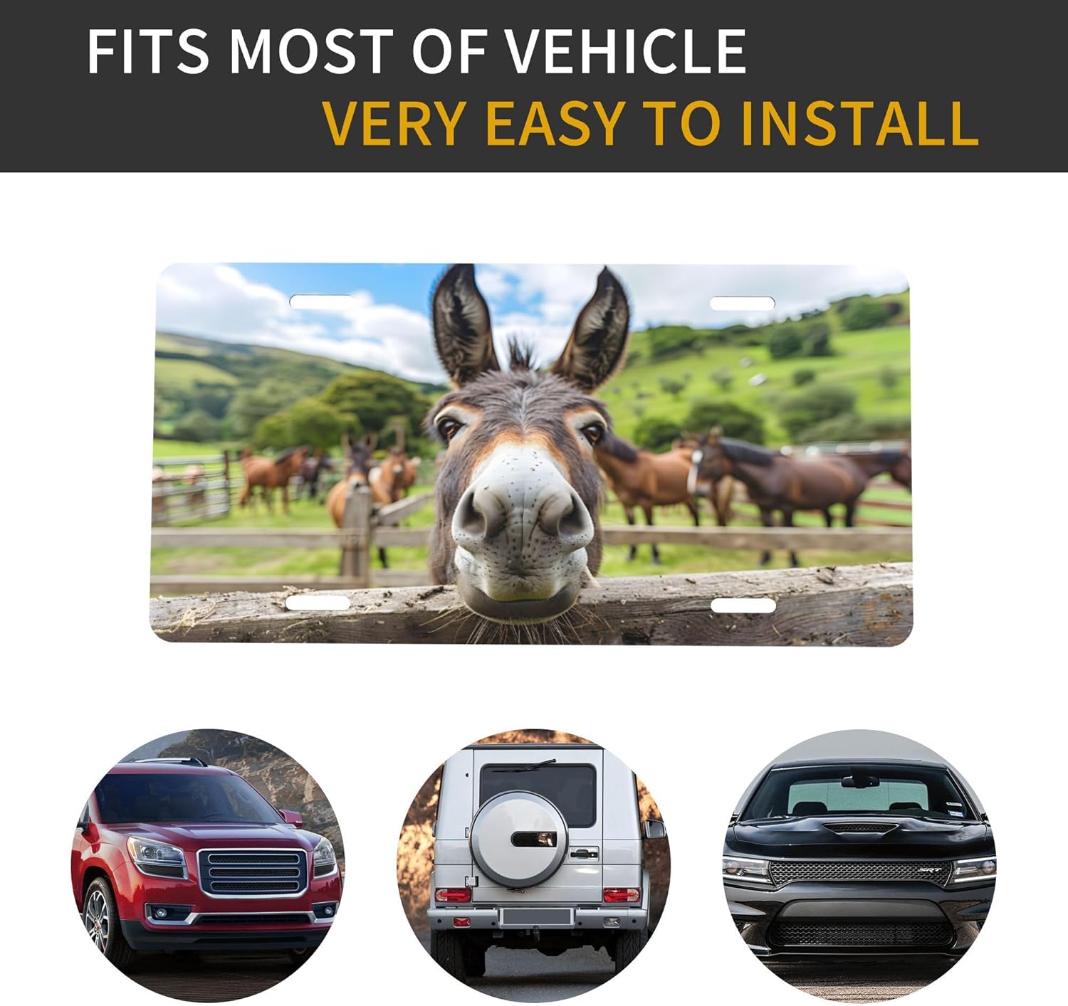 Funny Donkey Farm License Plate Funny Aluminum Front License Plates Decorative Waterproof Rust-Free Metal Car Plate Covers for Women Men Car Tag Accessories fit Truck SUV Rv 12 X 6 Inch