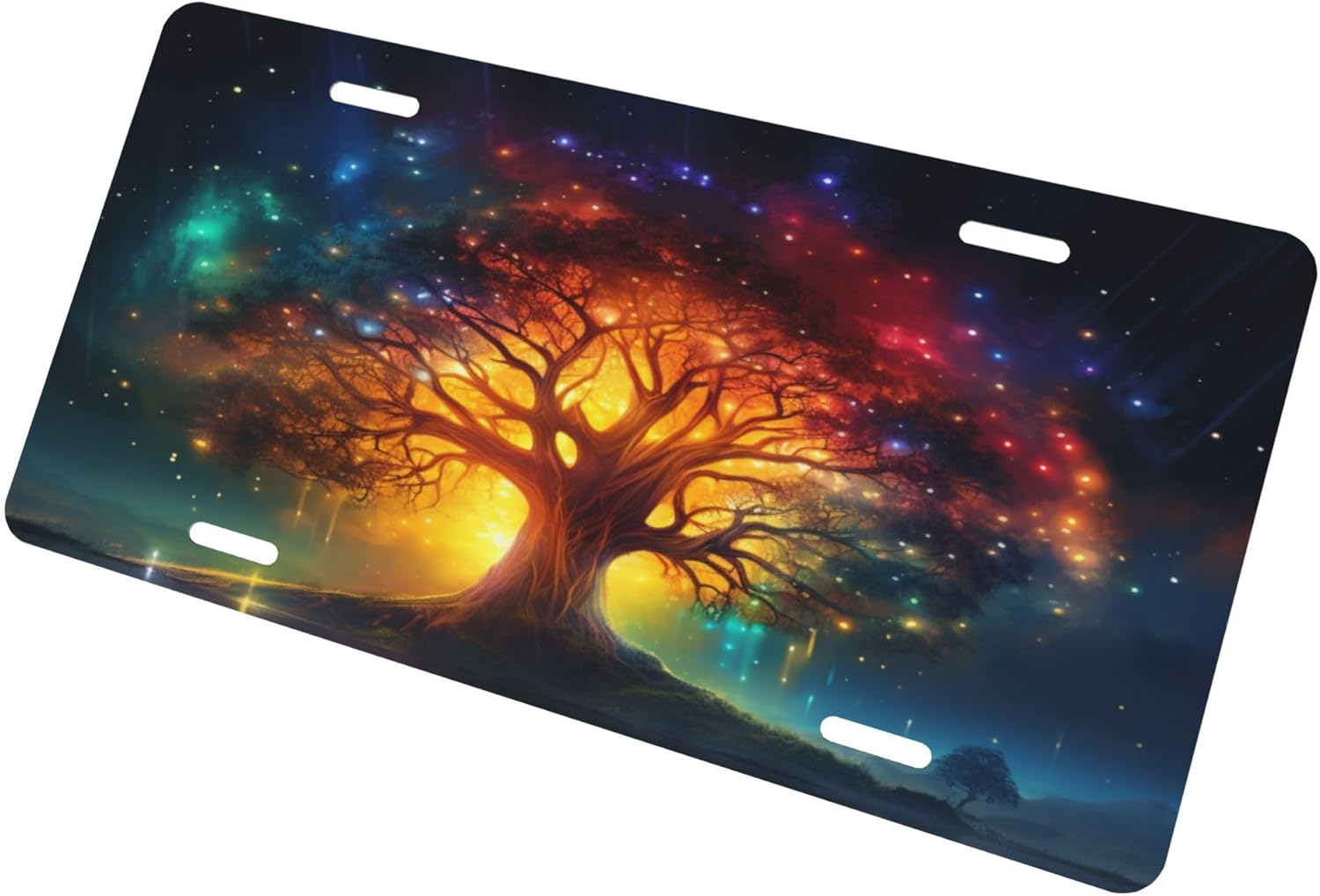 Tree of Life Galaxy Rainbow License Plate Funny Aluminum Front License Plates Decorative Waterproof Rust-Free Metal Car Plate Covers for Women Men Car Tag Accessories fit Truck SUV Rv 12 X 6 Inch
