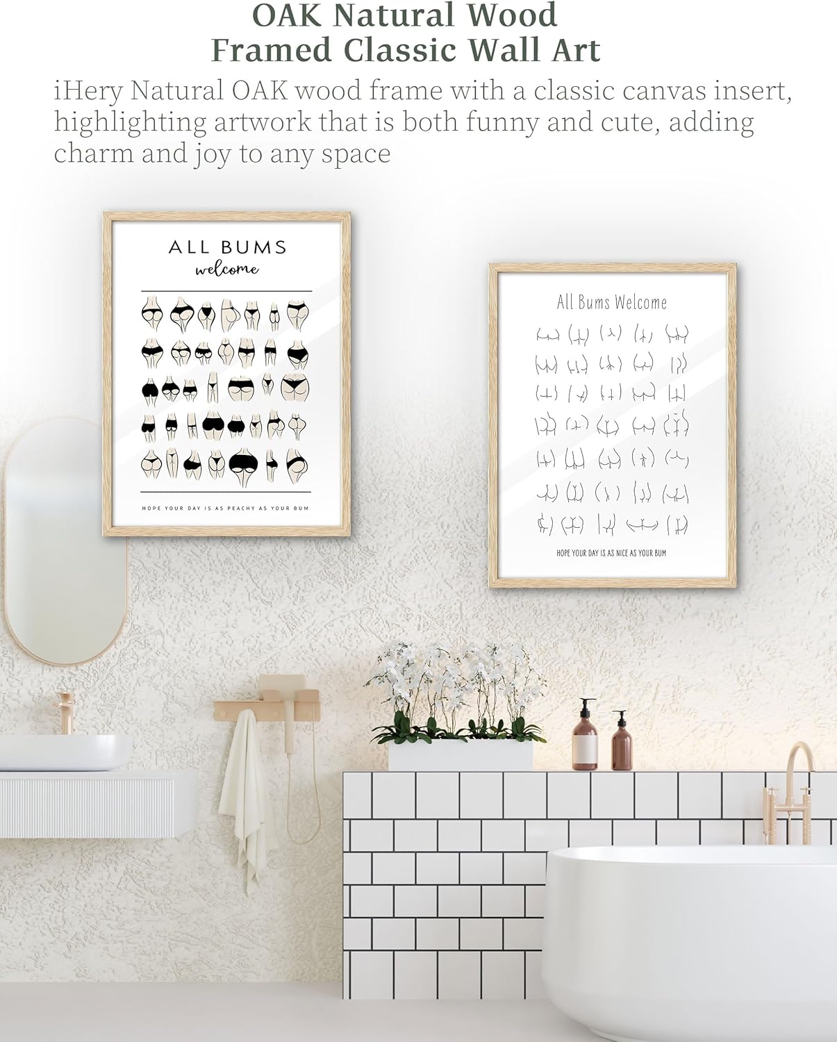 iHery Natural OAK Walnut Color Wood Nice Bum Framed Wall Art, 12x16in All Bums Are Welcome Nice Butt Bathroom Wall Art, Canvas Funny Bathroom Sign Wall Decor For Toilet Set of 1 Gift