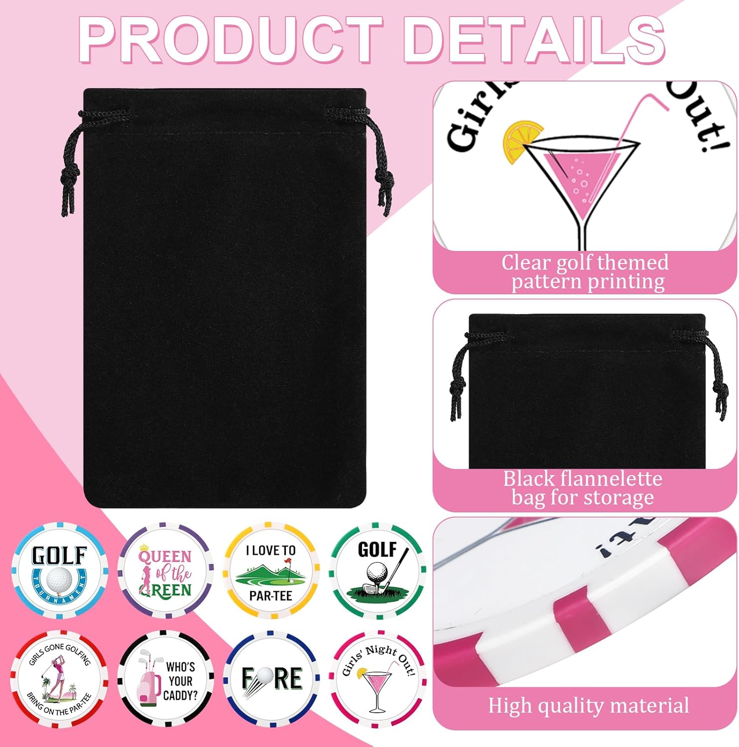 - 24 Pieces for Replacement: you will receive 24 pieces of golf themed poker chips in 8 different styles, 3 pieces for each style; The sufficient quantity and rich pattern designs cover your needs for sending gifts or party games, and you can also share them with your friend, sister and bestie