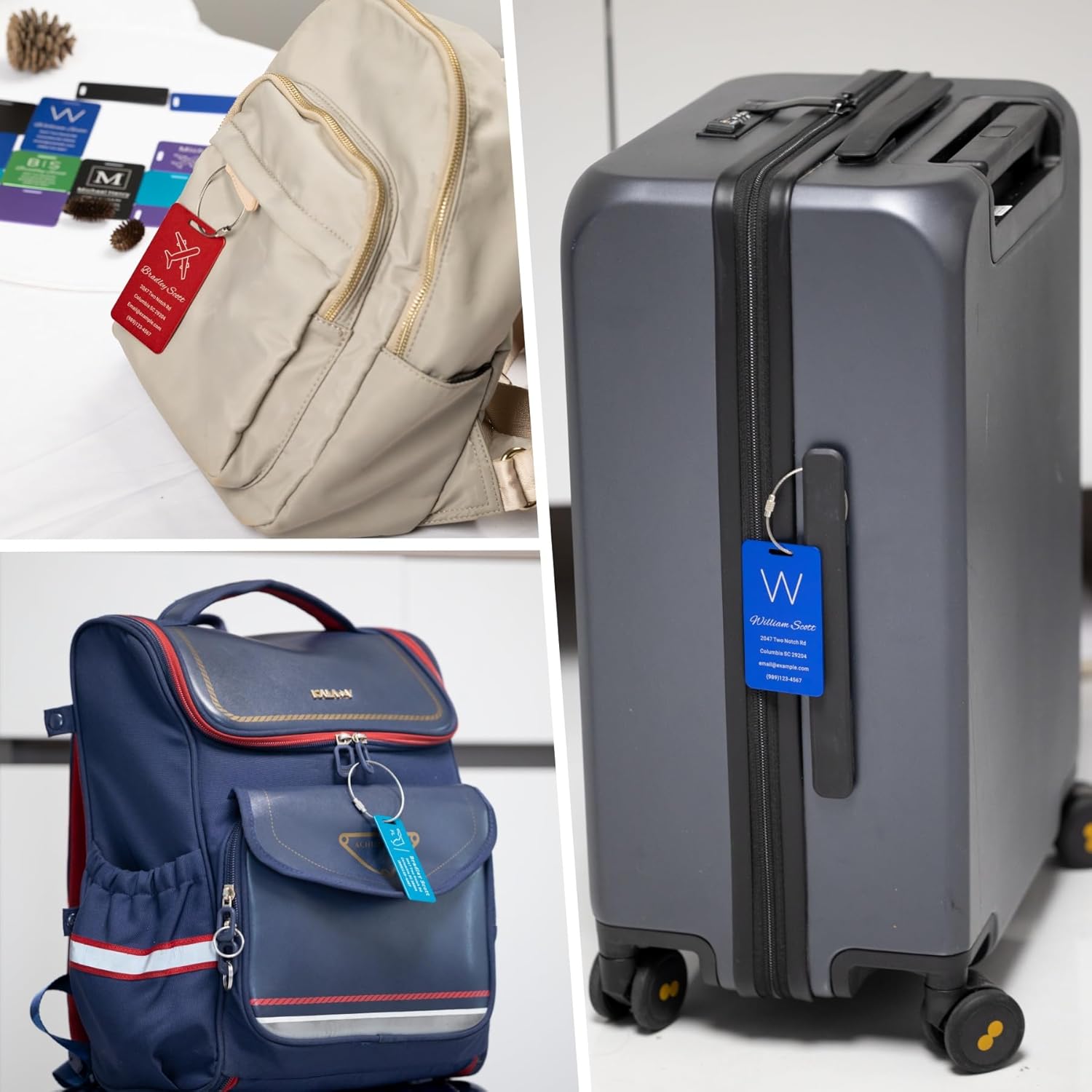 Personalized Luggage Tags for Suitcases Custom Metal Name Tags for Backpacks Bags Travel - Horizontal (Lakeblue)