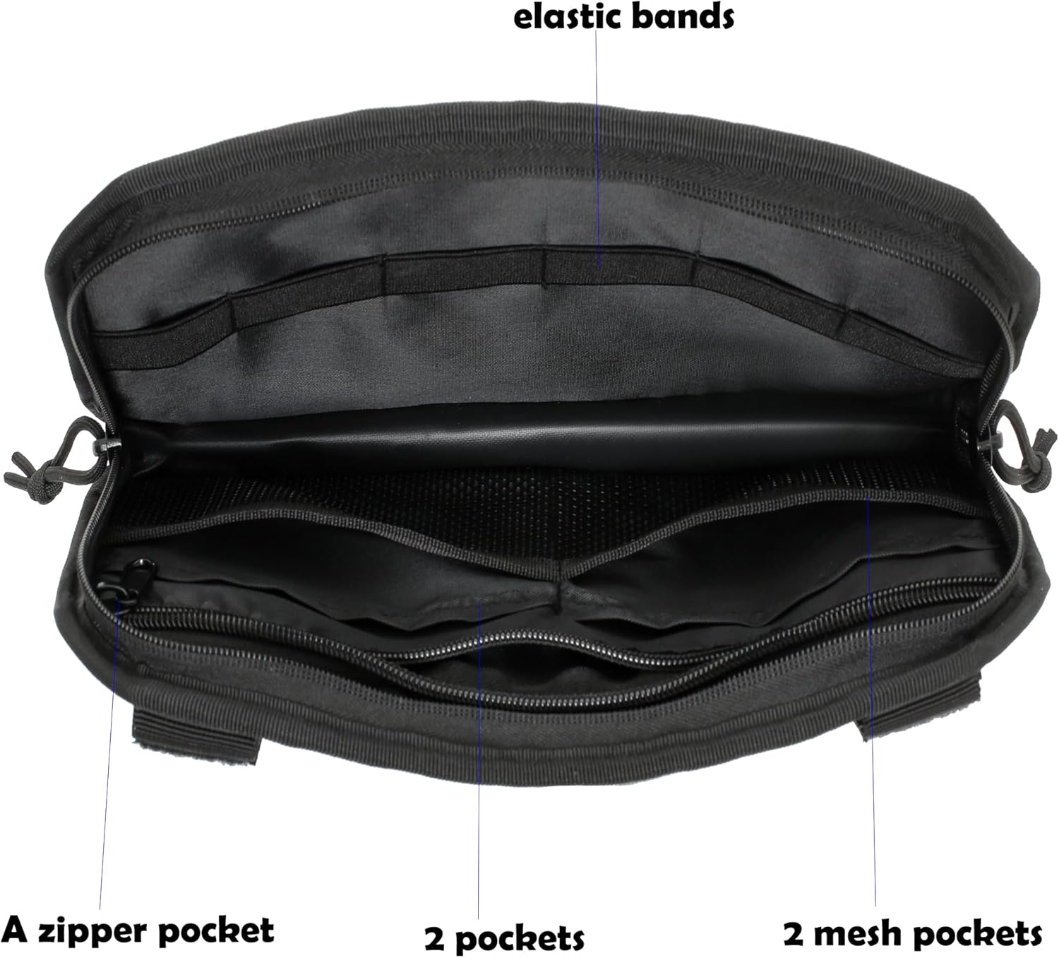 - Multiple Pockets Save Space:This car visor organizer gives your car more space for storage important items and at easy reach while driving. It contains 1 zipped big compartment, 1 mesh deep slip pocket, 3 Molle Webbing, and 1 glasses clip. Perfectly for storing your cards, licence, documents, phone, earphones, wires, sunglasses, charger cord, pens, CD and more.