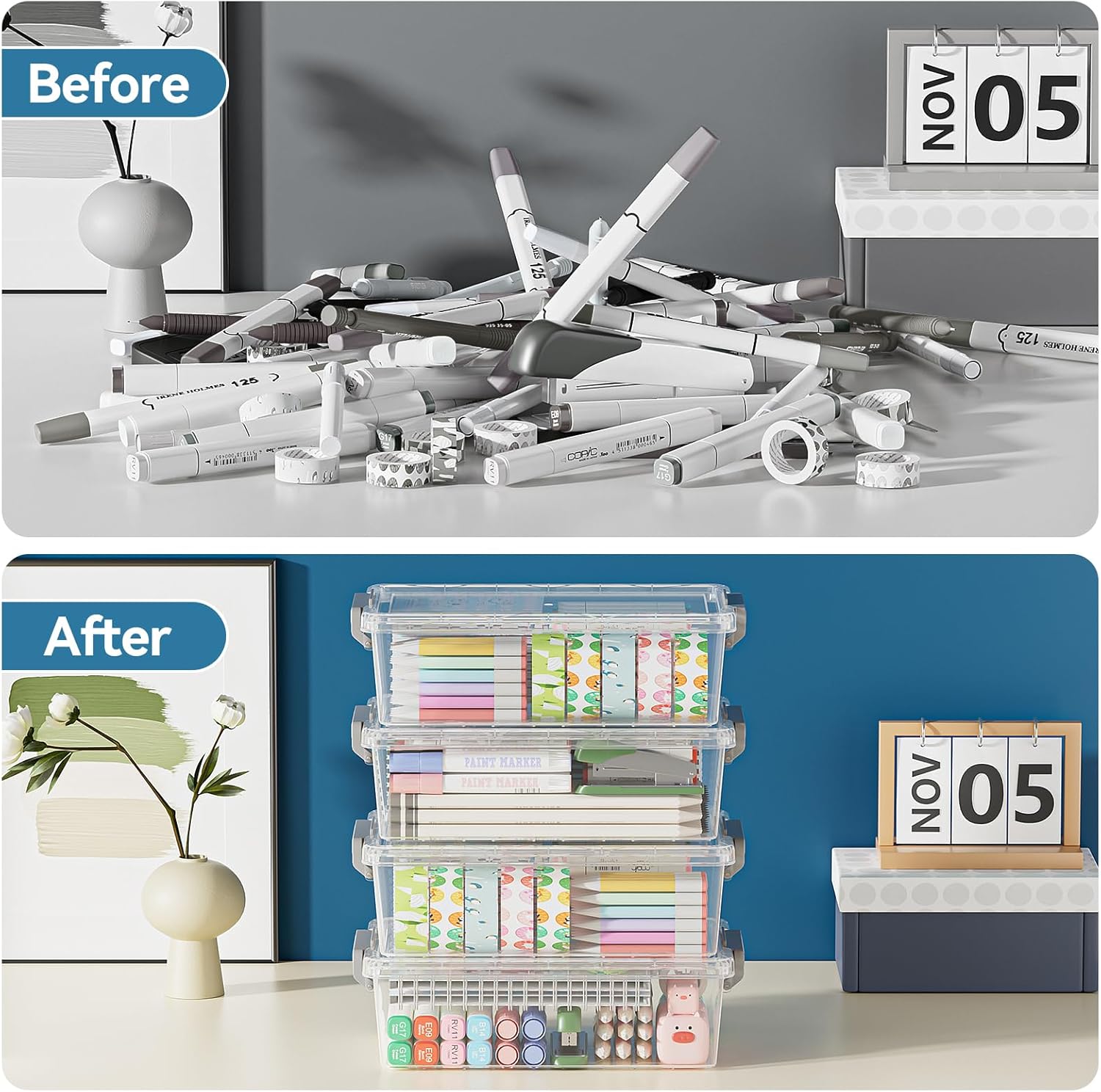 - Stackable & Snap-Tight Lid: Our marker storage organizer feature a stackable and nested design which maximizes the use of space and keeps your desktop neat and organized. These small storage containers comes with a secure snap-tight lid that is easy to open and close.