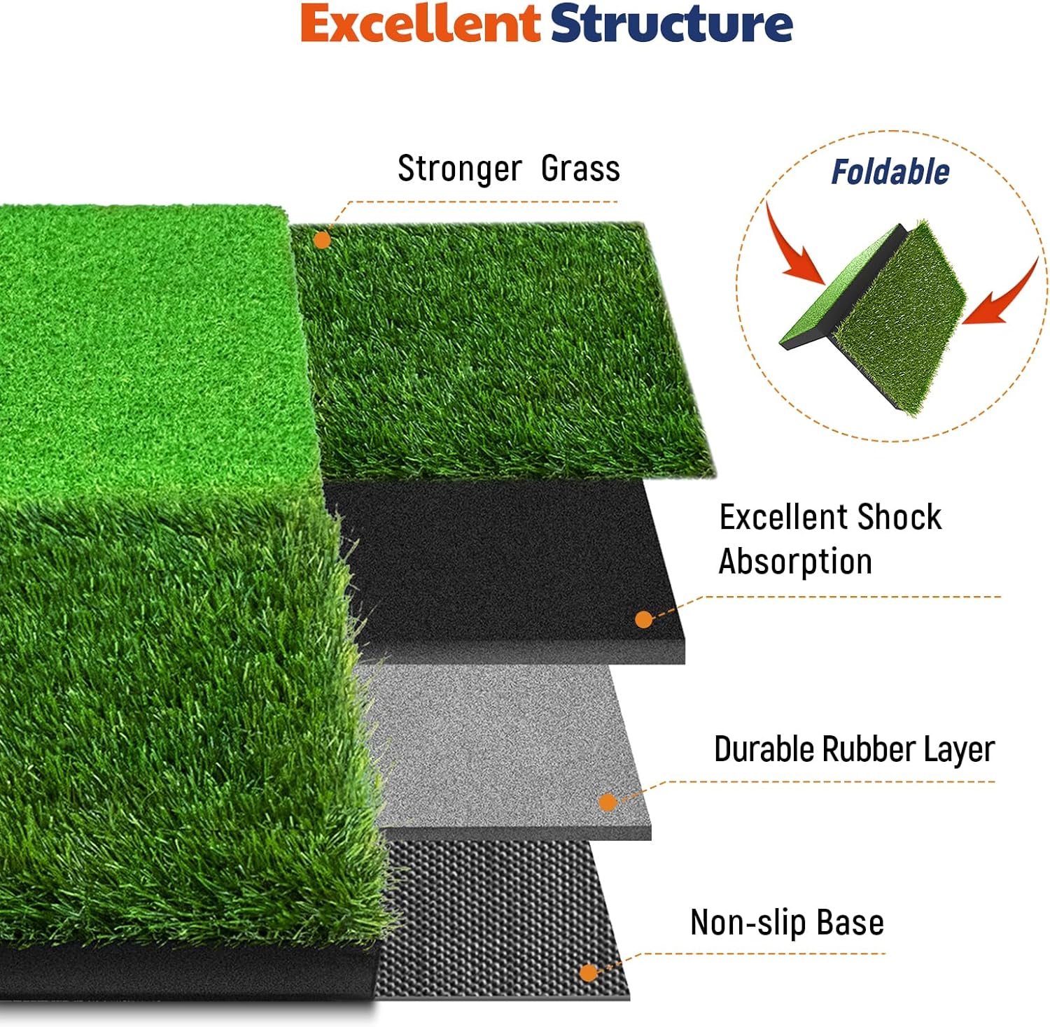 - 【2-IN-1 FOLDABLE DESIGN】Fairway and rough turf textures simulate real course conditions while protecting your carpet or lawn during indoor or outdoor practice