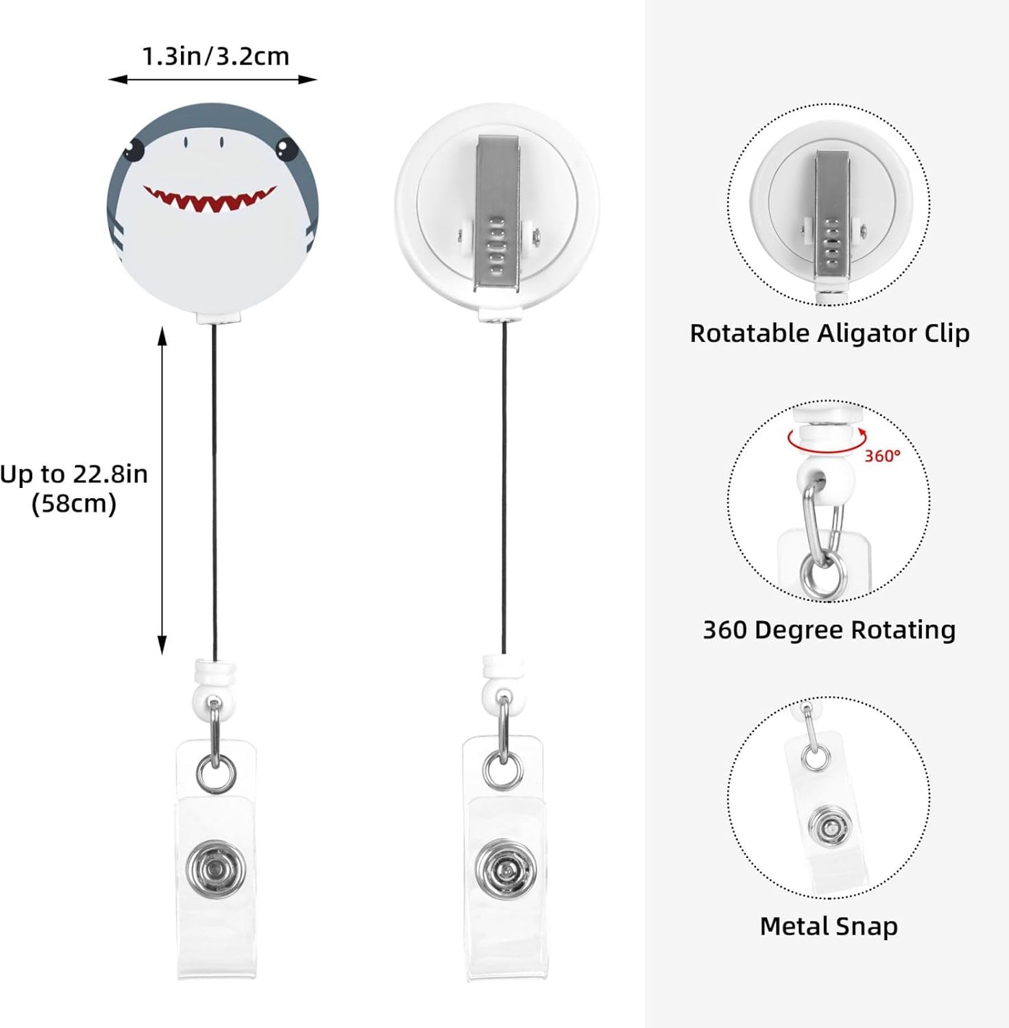 Shark Face Badge Reels Retractable Badge Holder with Clip for Id Name Tag Office Worker Student Teacher Nurse Doctor