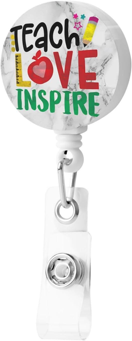 Teach Love Inspire Teacher Badge Reels Retractable Badge Holder with Clip for Id Name Tag Office Worker Student Nurse Doctor