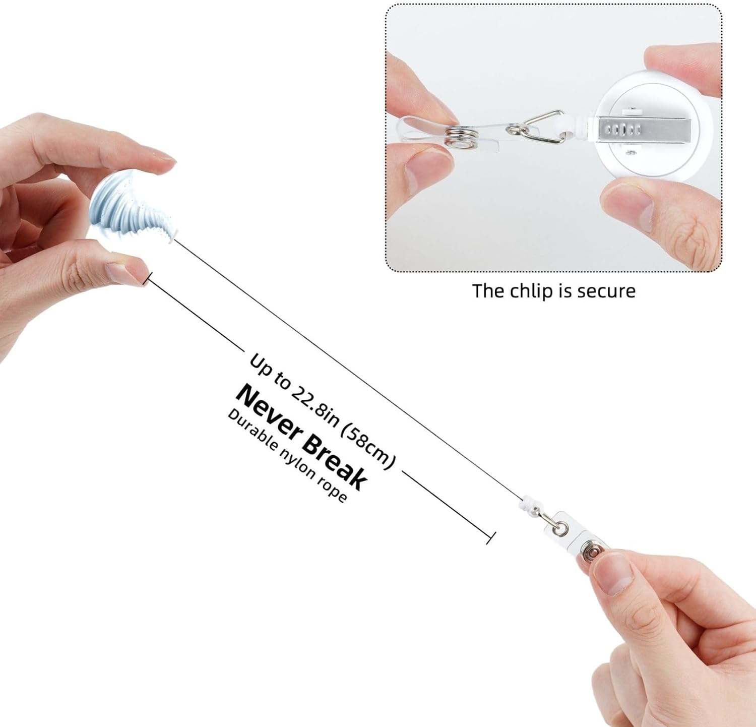 - Rotatable and Retractable Design: The Id Badge Reel Adopts a 360-Degree Rotating and Retractable Design, and The Badge Holder Can Naturally Extend To About 22.8 Inches In Length