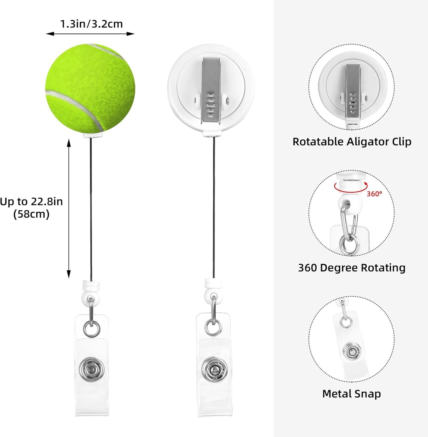 Tennis Badge Reels Retractable Badge Holder with Clip for Id Name Tag Office Worker Student Teacher Nurses Doctor