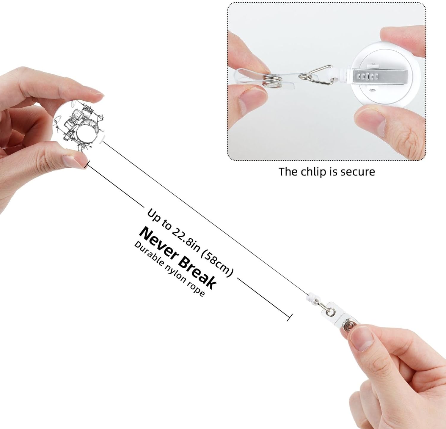 Music Drum Rock Jazz Badge Reels Retractable Badge Holder with Clip for Id Name Tag Office Worker Student Teacher Nurse Doctor
