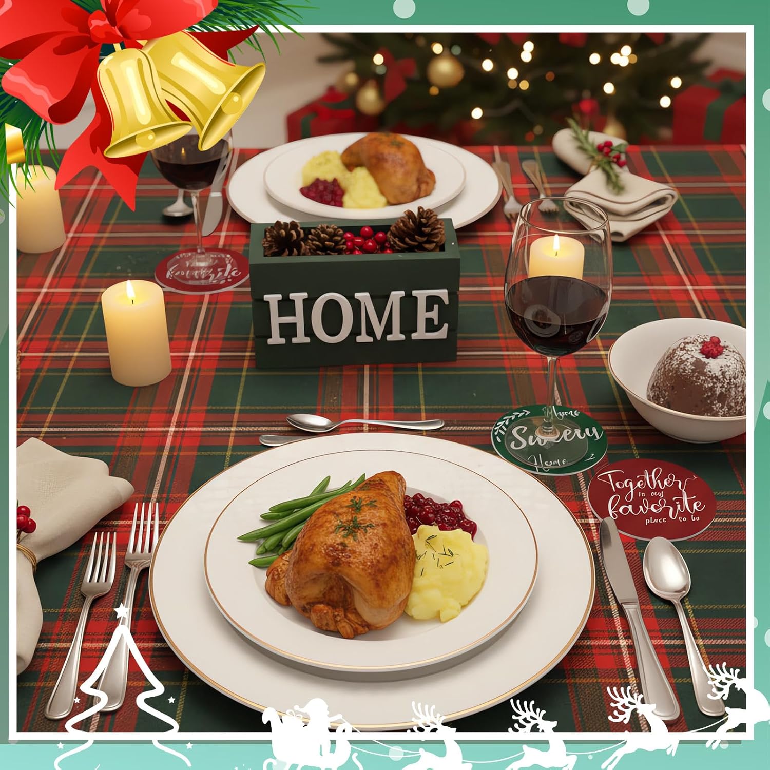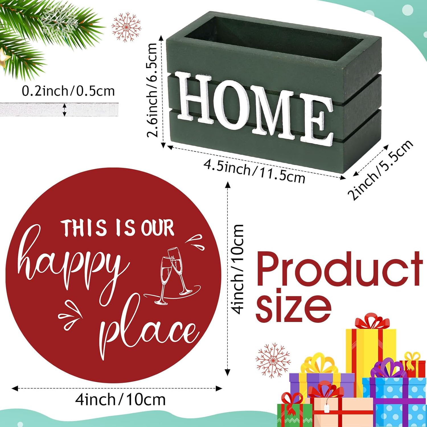Queekay Housewarming Gifts for Home Decoration Wooden Heart Coasters for Drinks 6 Set Farmhouse Coasters with Holder Funny for Family Coffee Table Protection, 4''(Red,Green)
