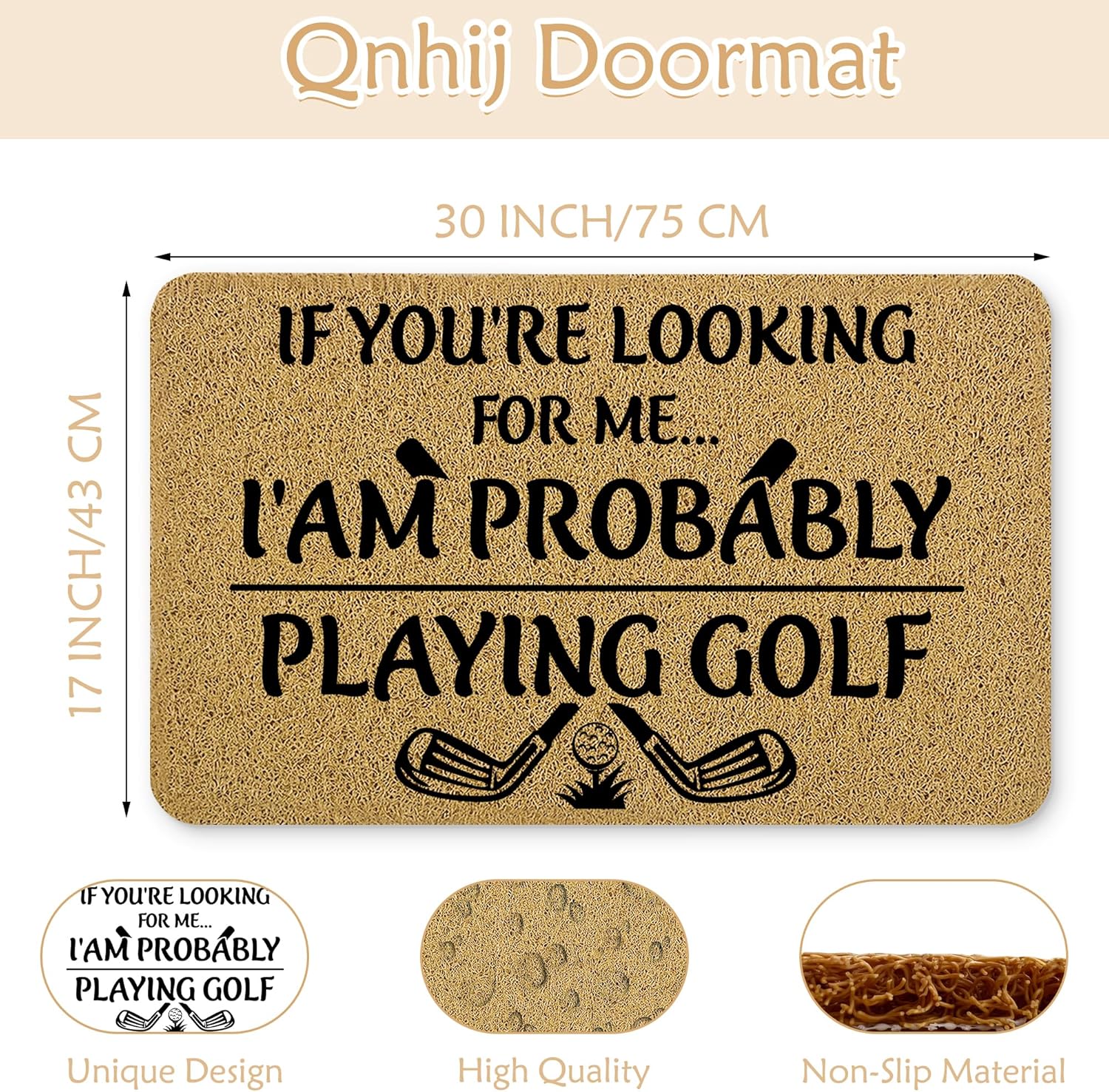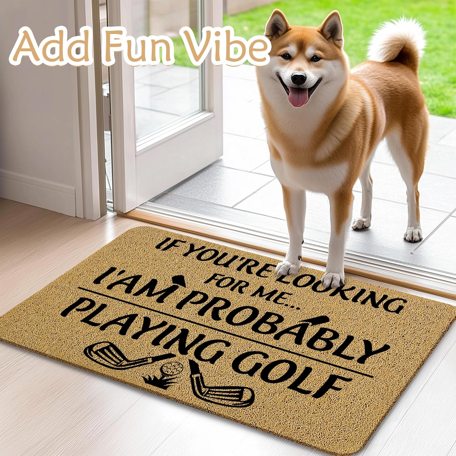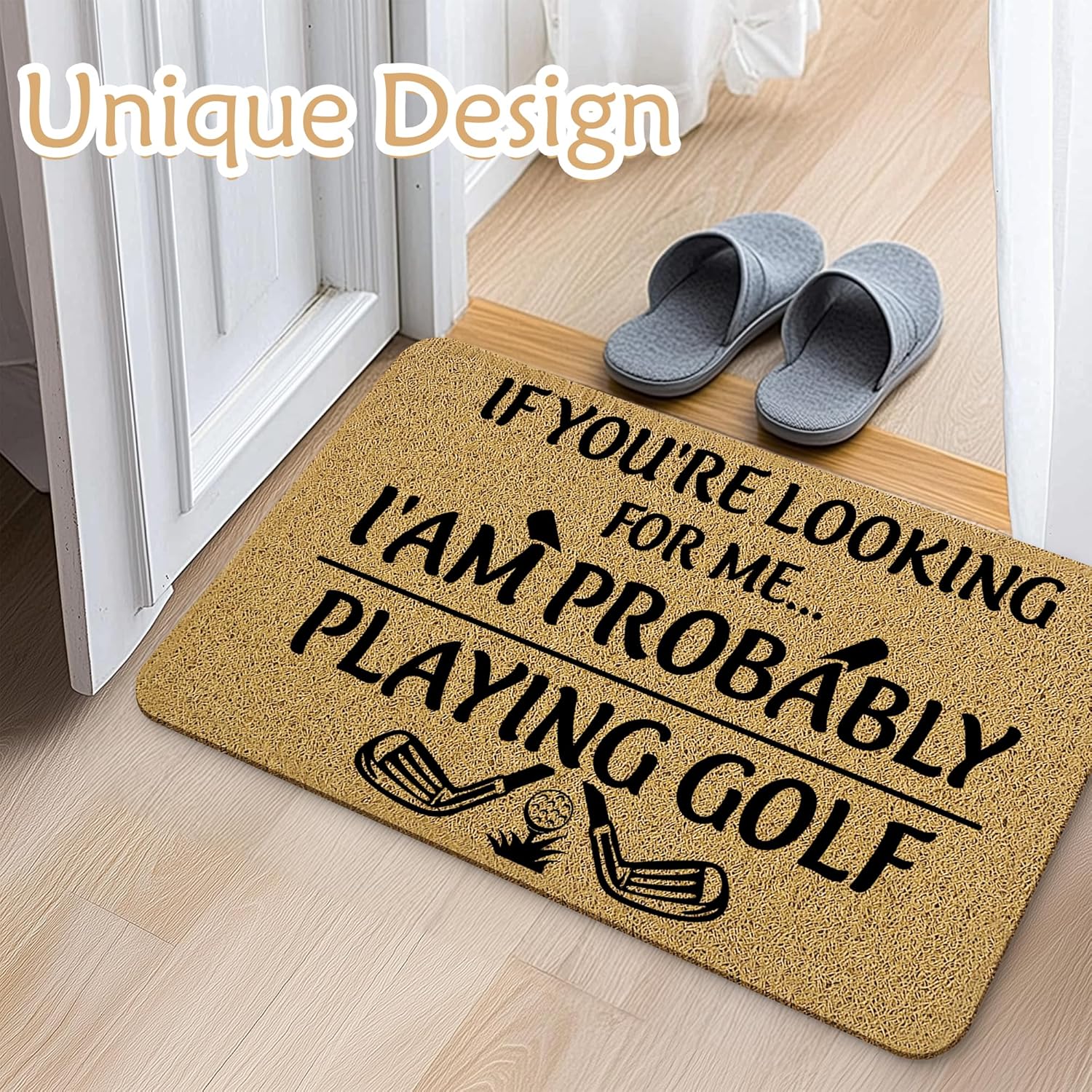 Golf Door Mat, Golf Welcome Mats for Front Door, Probably Out Golfing Humorous Doormat, 17x30 Inches
