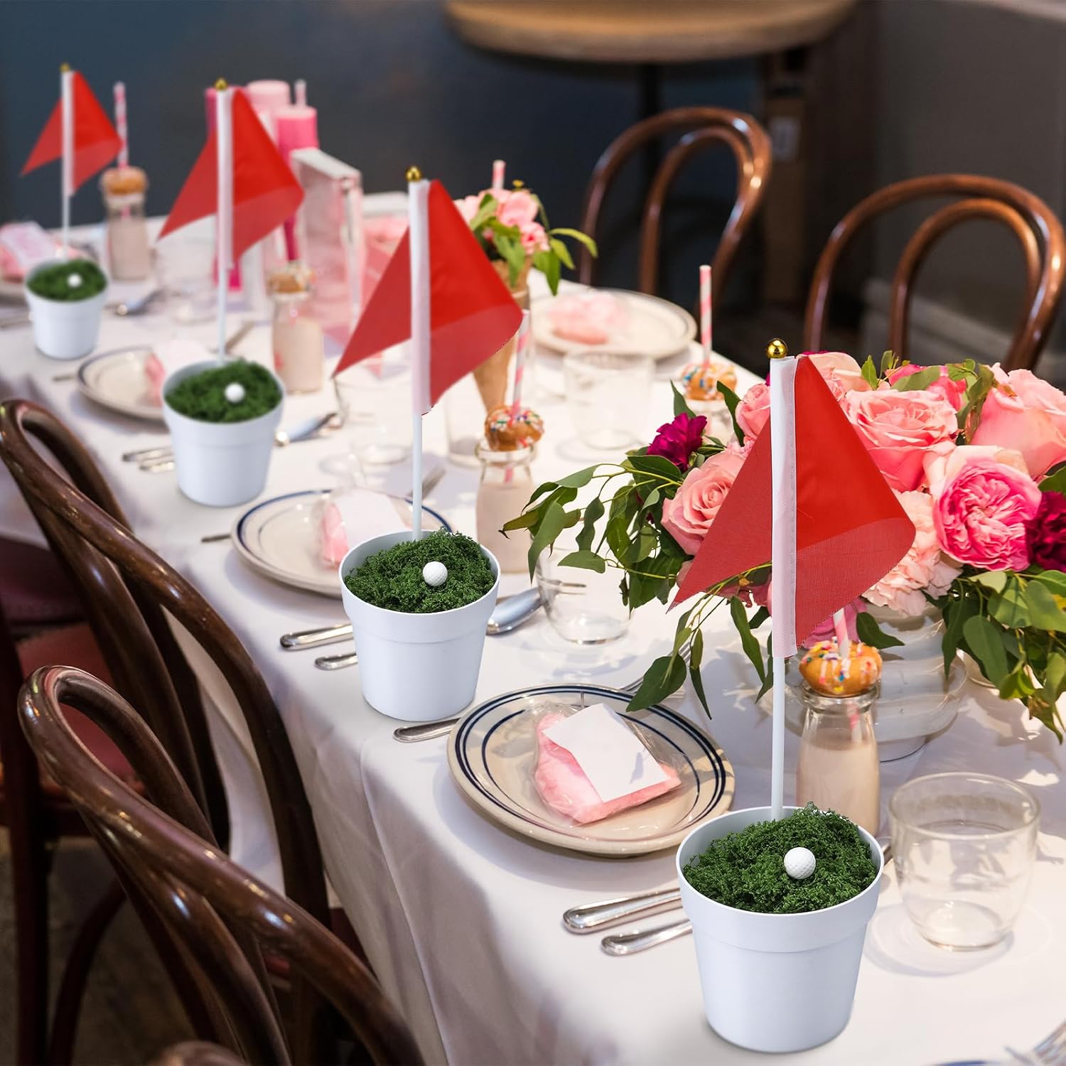 Mimorou 4 Sets Golf Table Centerpiece Decorations Party Supplies Include Mini Golf Ball Mini Flowerpot Artificial Moss Lawn Red Flag for Golfers Sport Themed Birthday DIY Party Decor
