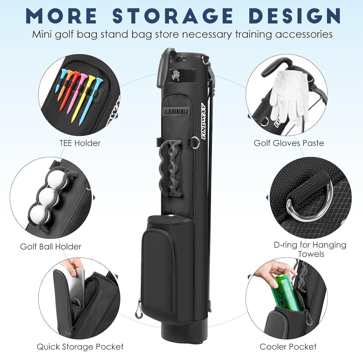 - 【Perfect Storage for the Driving Range】No need to carry a heavy golf bag, the Findway par 3 golf bag easily fits into any luggage, perfect for use at the golf driving range, whether you want to play a quick 9, practice at the driving range, or enjoy a relaxing Sunday game, it is your ultimate lightweight golf companion. Note: Package does not include golf accessories.