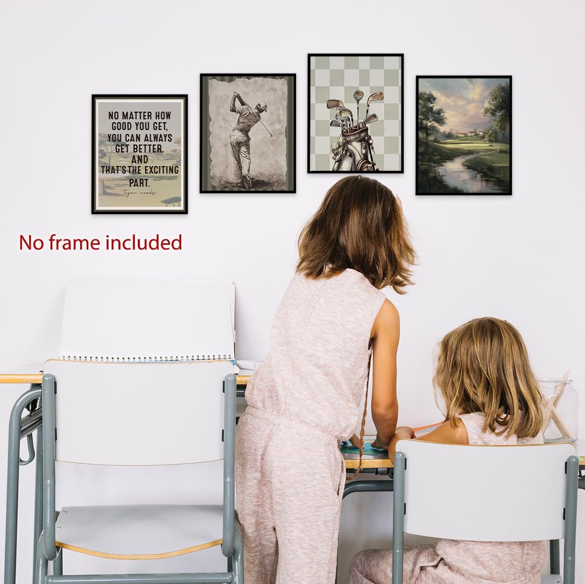laveliabel Vintage Golf Wall Art Prints Set of 4 Unframed, Golf Pictures Wall Decor, GolfGifts for Men, Vintage Retro Checkered GolfPoster Prints for Home Room GolfOffice WallDecor 8x10inches